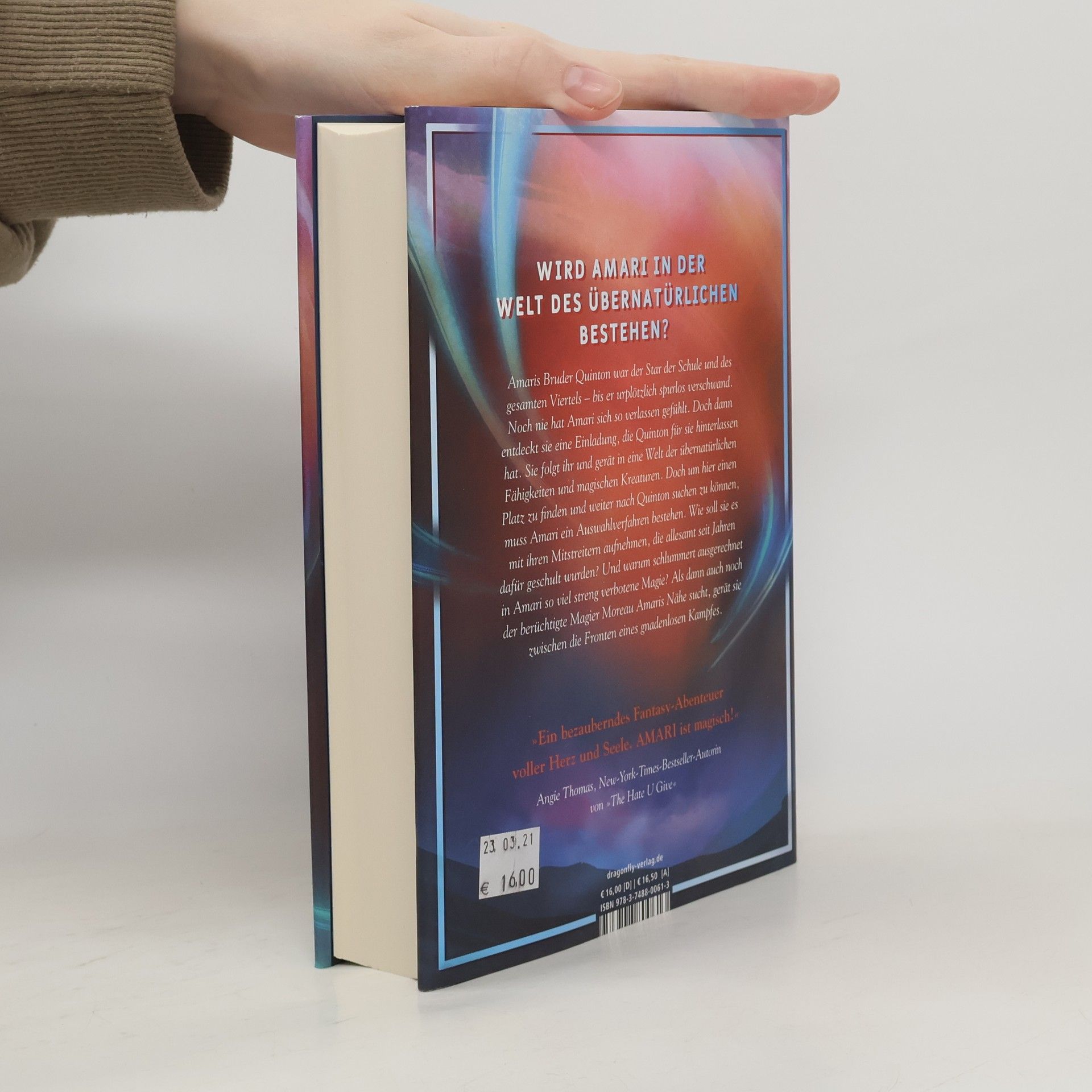 Wird Amari in der Welt des Übernatürlichen bestehen? Amaris Bruder Quinton, der Star der Schule und des Viertels, verschwindet plötzlich spurlos. Amari fühlt sich verloren, bis sie eine Einladung entdeckt, die Quinton für sie hinterlassen hat. Diese führt sie in eine Welt voller übernatürlicher Fähigkeiten und magischer Kreaturen. Um ihren Platz zu finden und Quinton zu suchen, muss Amari ein Auswahlverfahren bestehen. Wie kann sie gegen Mitstreiter antreten, die jahrelang trainiert wurden? Zudem schlummert in Amari verbotene Magie. Als der berüchtigte Magier Moreau ihr näher kommt, findet sie sich in einem gnadenlosen Kampf wieder. Ein bezauberndes Fantasy-Abenteuer voller Herz und Seele. Angie Thomas, Bestseller-Autorin, beschreibt es als magisch. Daniela Martens nennt es einen sozialkritischen und spannenden Roman. Andrea Wedan hebt die magische, spannende und humorvolle Erzählweise hervor. Afrokids Germany fordert dazu auf, sich von Amari in eine neue, magische Welt entführen zu lassen. Alexandra Fichtler-Laube lobt das Buch als längst überfällig, mit einer starken afroamerikanischen Protagonistin. Es fesselt die Leser bis zur letzten Seite und sprudelt vor Fantasie. Simone Bartz beschreibt es als ein Abenteuer voller Kreativität. Ein neuer Star am Fantasy-Himmel!
