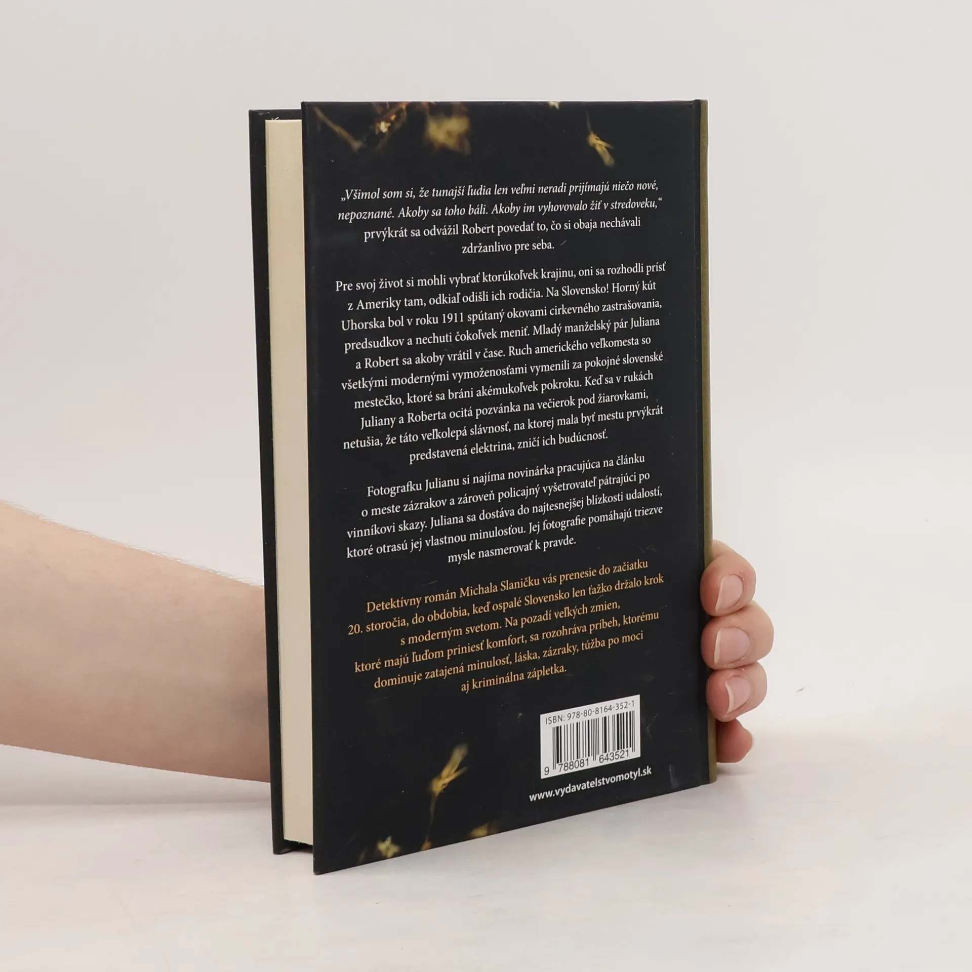 „Všimol som si, že tunajší ľudia len veľmi neradi prijímajú niečo nové, nepoznané. Akoby sa toho báli. Akoby im vyhovovalo žiť v stredoveku,“ vyjadril sa Robert, čím odhalil obavy, ktoré obaja skrývali. Mladý manželský pár, Juliana a Robert, sa rozhodli opustiť Ameriku a vrátiť sa do krajiny svojich predkov, na Slovensko, kde v roku 1911 prevládali predsudky a cirkevné zastrašovanie. Vymenili ruch moderného mesta za pokoj malebného slovenského mestečka, ktoré sa bránilo pokroku. Ich životy sa zmenia, keď dostanú pozvánku na večierok, kde sa má prvýkrát predstaviť elektrina. Táto udalosť však prinesie nečakané následky. Juliana, fotografka, je najatá novinárkou, ktorá píše článok o meste, a zároveň sa zapletie do vyšetrovania policajného detektíva. Jej fotografie sa stanú kľúčom k odhaleniu pravdy, ktorá súvisí s jej vlastnou minulosťou. Detektívny román Michala Slaničku prenáša čitateľa do začiatku 20. storočia, do doby, keď Slovensko zápasilo s modernizáciou. Príbeh je prepletený témami lásky, moci, zázrakov a kriminálnych zápletiek, pričom odhaľuje skryté tajomstvá a túžby postáv.