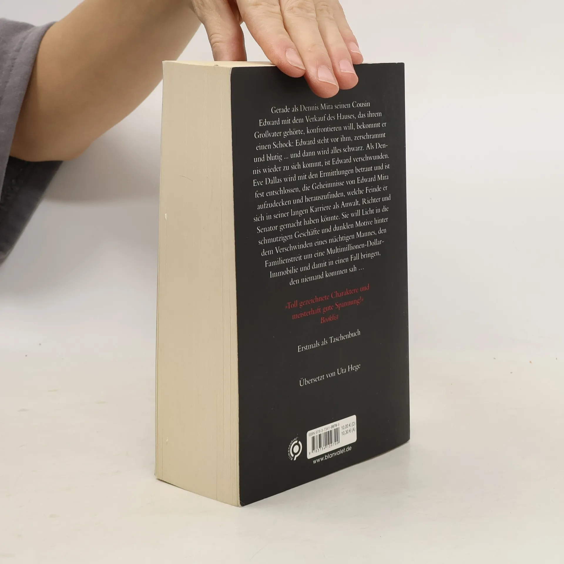 In ihrem 42. Fall muss Eve Dallas sich ihren eigenen Dämonen stellen und in einem atemberaubenden Wettlauf einen Mörder aufhalten … Gerade als Dennis Mira seinen Cousin Edward mit dem Verkauf des Hauses, das ihrem Großvater gehörte, konfrontieren will, bekommt er einen Schock: Edward steht vor ihm, zerschrammt und blutig ... und dann wird alles schwarz. Als Dennis wieder zu sich kommt, ist Edward verschwunden. Eve Dallas wird mit den Ermittlungen betraut und ist fest entschlossen, die Geheimnisse von Edward Mira aufzudecken und herauszufinden, welche Feinde er sich in seiner langen Karriere als Anwalt, Richter und Senator gemacht haben könnte. Sie will Licht in die schmutzigen Geschäfte und dunklen Motive hinter dem Verschwinden eines mächtigen Mannes, den Familienstreit um eine Multimillionen-Dollar-Immobilie und damit in einen Fall bringen, den niemand kommen sah … J. D. Robb übertrifft sich mit jedem Band ihrer SPIEGEL-Bestsellerserie erneut: Verpassen Sie nicht die anderen Fälle von Eve Dallas! Alle Roman sind unabhängig voneinander lesbar.