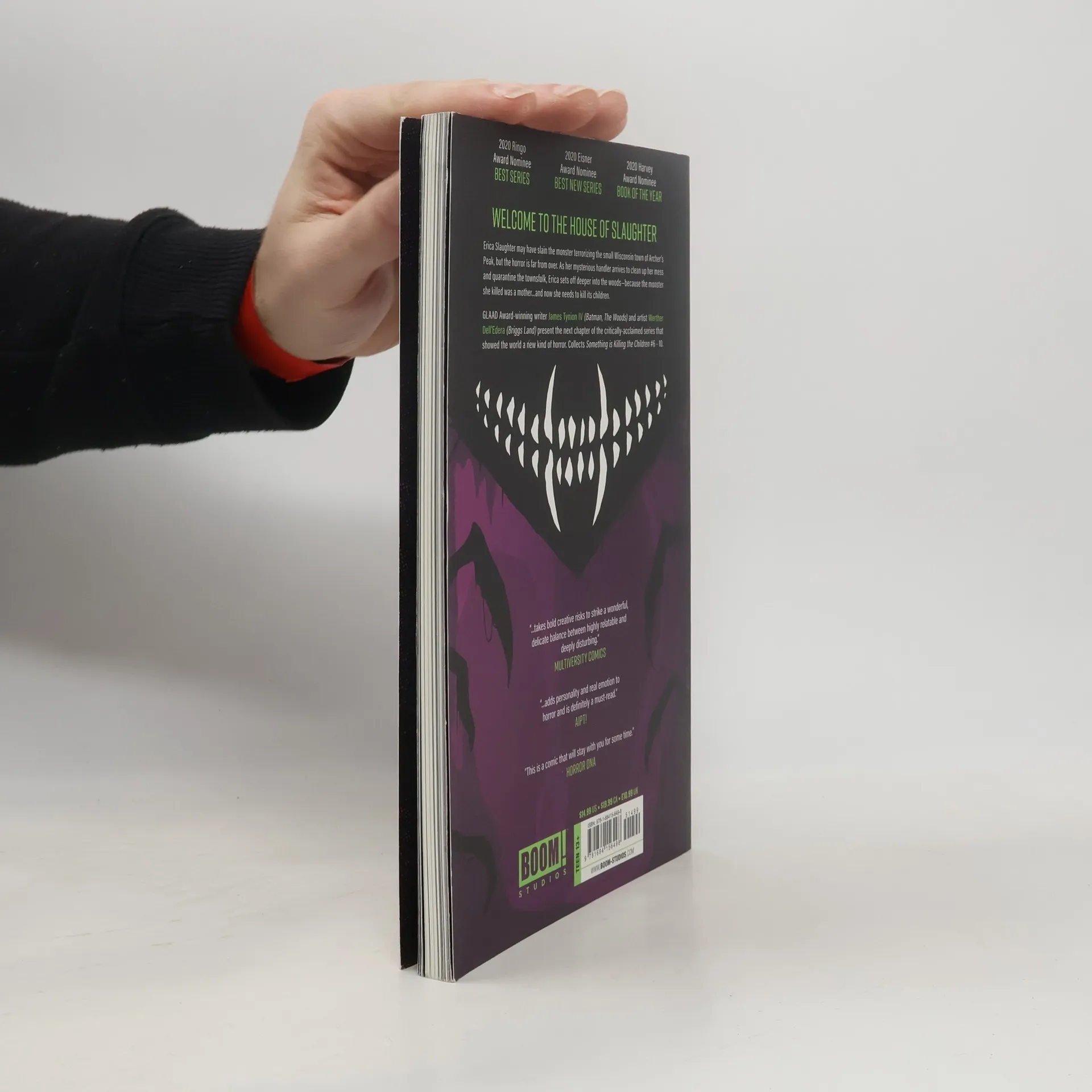 Erica Slaughter may have slain the monster terrorizing the small Wisconsin town of Archer’s Peak, but now she sets off deeper into the woods -- because the monster she killed was a mother… and now she needs to kill its children. EVIL NEVER DIES...UNLESS ERICA SLAUGHTER KILLS IT. Erica Slaughter may have slain the monster terrorizing the small Wisconsin town of Archer’s Peak, but the horror is far from over. As her mysterious handler arrives in town to clean up her mess and quarantine the townsfolk, Erica sets off deeper into the woods -- because the monster she killed was a mother… and now she needs to kill its children. GLAAD Award-winning writer James Tynion IV (Batman, The Woods) and artist Werther Dell’Edera (Briggs Land) present the next chapter of the critically acclaimed series that showed the world a new kind of horror. Collects Something is Killing the Children #6-10.
