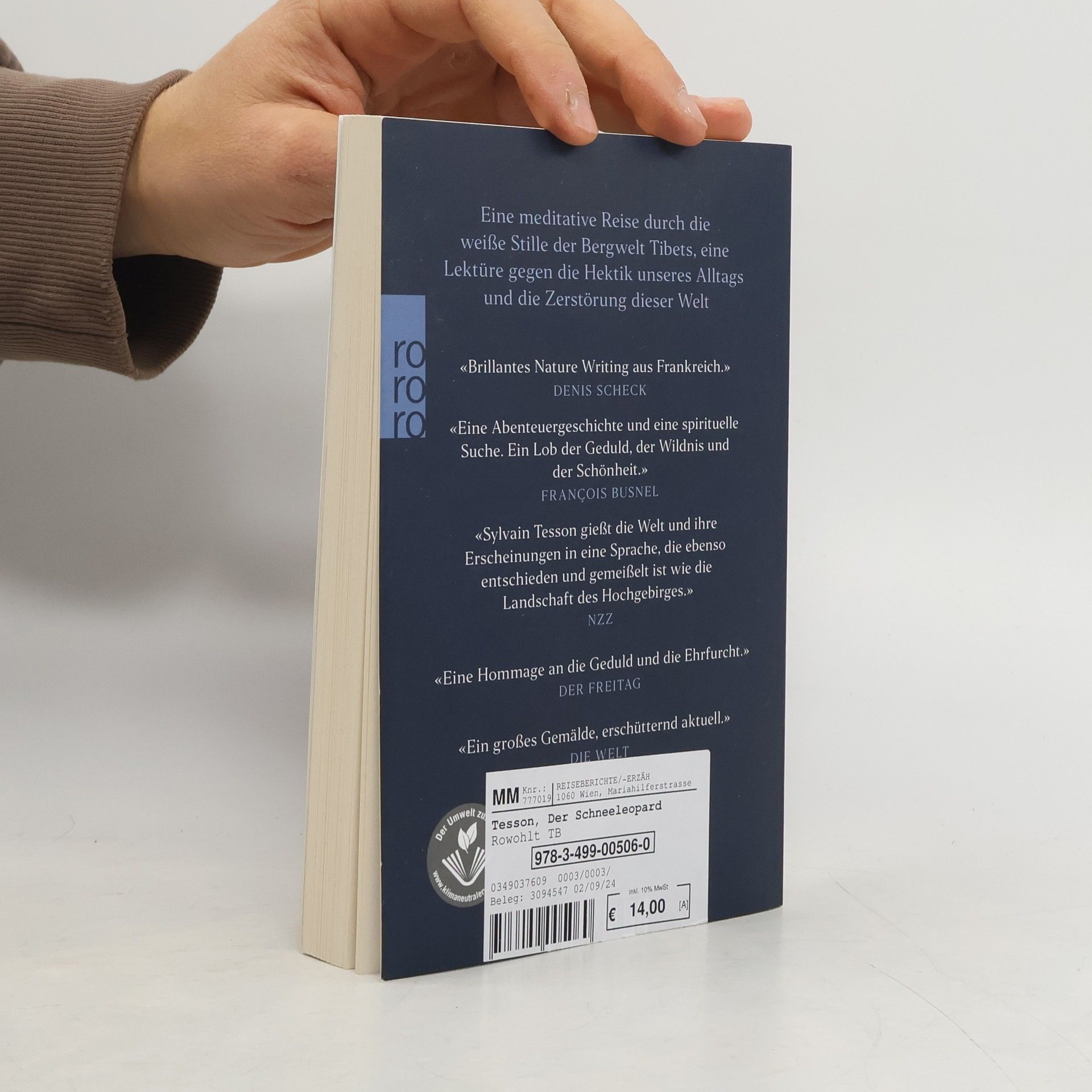 Gemeinsam mit dem Fotografen Vincent Munier reist der Abenteurer und Schriftsteller Sylvain Tesson nach Tibet, um sich auf die Suche nach einem der seltensten Tiere dieser Erde zu begeben – dem Schneeleoparden. Ob sie dem Tier begegnen werden? Ungewiss. Auf über 4000 Metern, fernab vom Lärm der Zivilisation, hinterfragt Tesson eine Welt, in der kaum noch Raum bleibt für das Ungebändigte und die Entfaltung der Schönheit der Natur. Entstanden ist ein aufrüttelndes, preisgekröntes, kraftvolles Werk, dessen Sog man sich nicht entziehen kann: Eine meditative Reise in die weiße Stille des Himalaya, eine Lektüre gegen die Hektik unseres Alltags und die Zerstörung der Welt. «Der Schneeleopard» war mit über einer halben Million verkauften Exemplaren das erfolgreichste französischsprachige Buch des Jahres 2019, in Deutschland stand der preisgekrönte Titel von Sylvain Tesson wochenlang auf der Spiegel-Bestsellerliste.