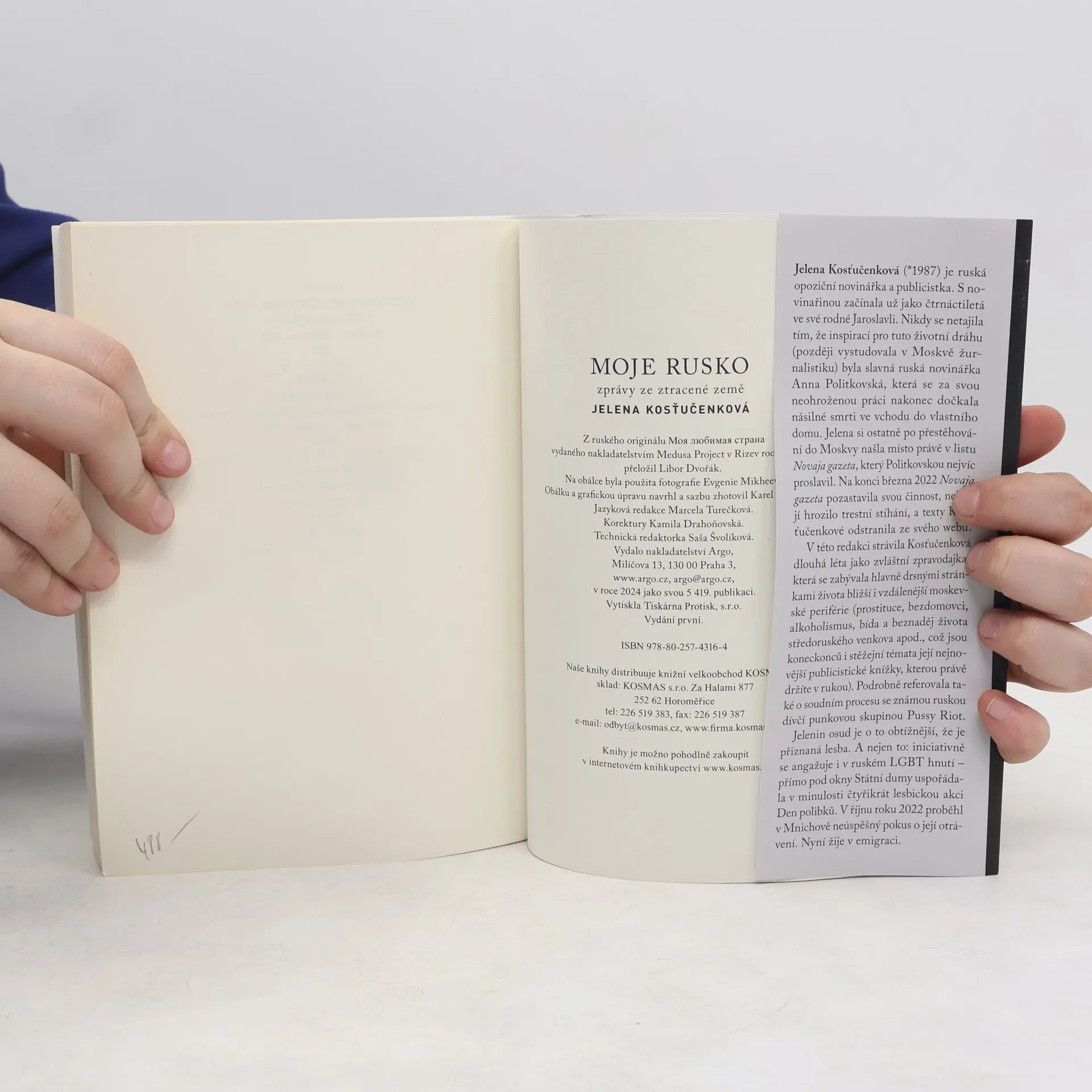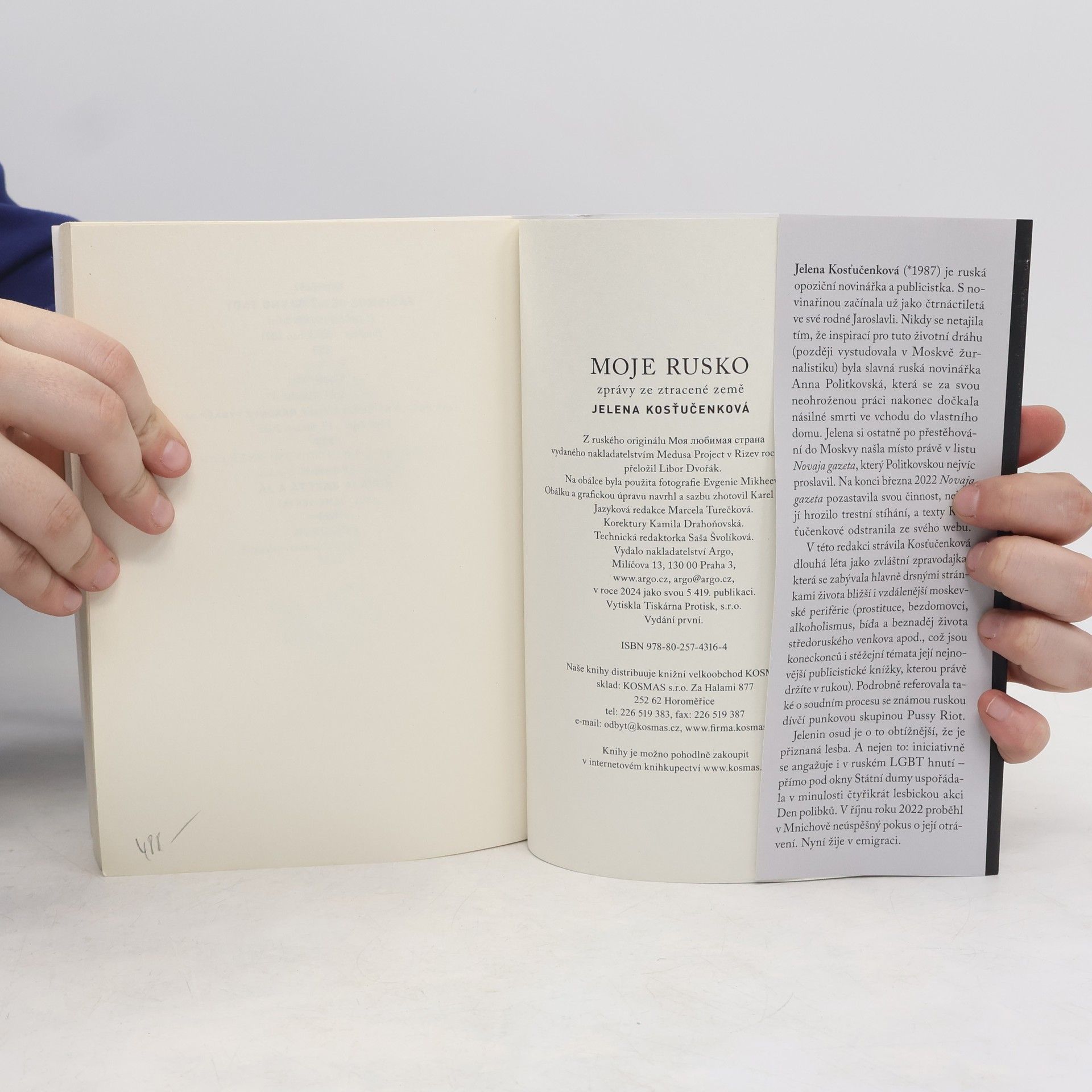 Nejnovější publicistická kniha Moje Rusko. Zprávy ze ztracené země známé ruské novinářky a dlouholeté redaktorky a zvláštní zpravodajky listu Novaja gazeta Jeleny Kosťučenkové velmi věrně odráží hlavní autorčiny reportérské zájmy. Většina textů se odehrává v místech, která jsou základním předmětem Jeleniny pozornosti – beznadějně zapomenutá a Bohem i lidmi odstrčené kouty středního Ruska, kde bují především bída, beznaděj, alkoholismus a prostituce. Kniha se tak stává svéráznou kronikou jejího života a profesionální práce posledních zhruba patnácti let. Výjimečný portrét národa a ženy, která nechce být umlčena.