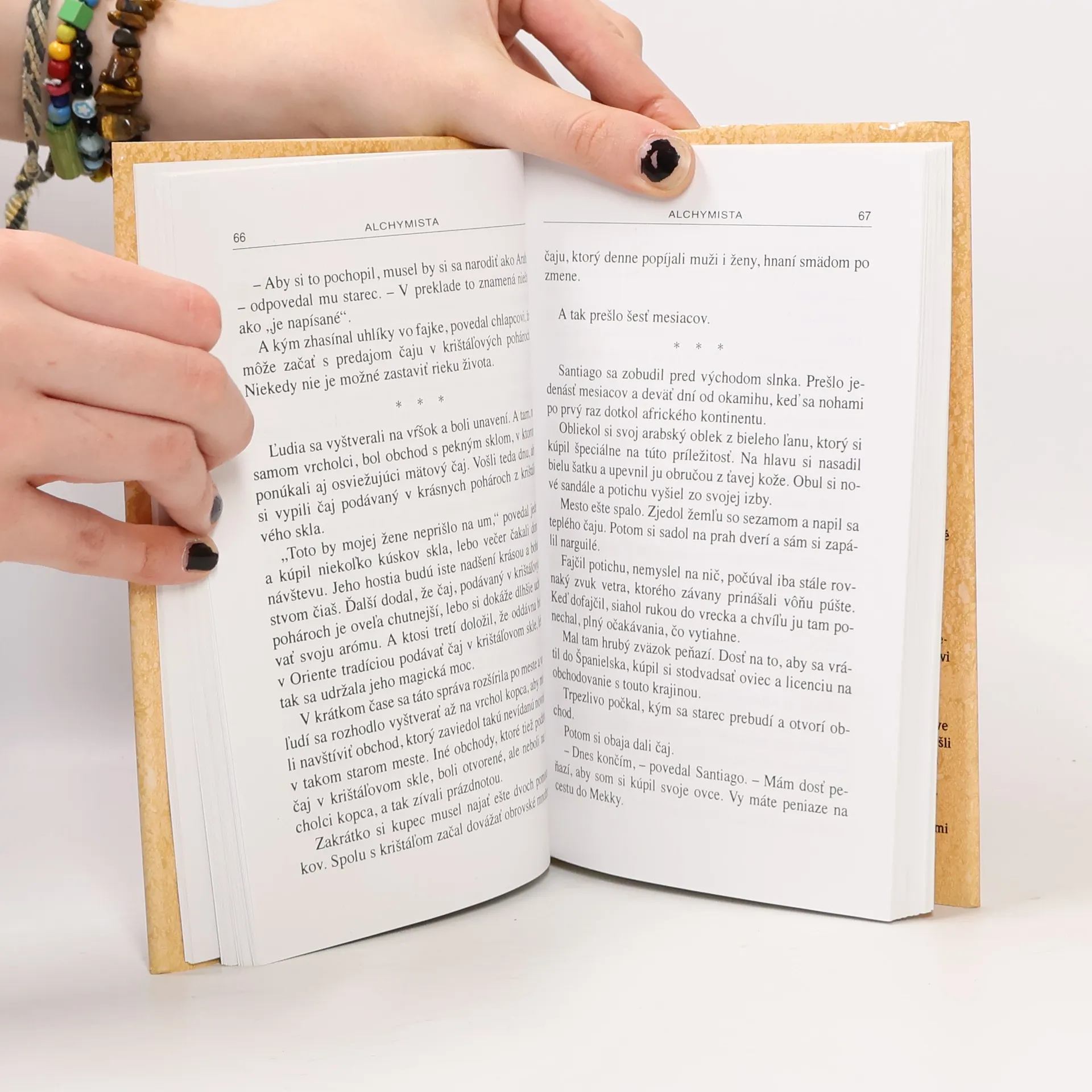 Symbolické putovanie andalúzskeho pastiera Santiaga za pokladom do Egypta. Prostredníctvom symbolického jazyka alchýmie sa Paulo Coelho snaží sprostredkovať poznanie, v čom spočíva podstata šťastia i to, že poslaním každého človeka je ísť po stopách znamení za svojím Osobným príbehom.