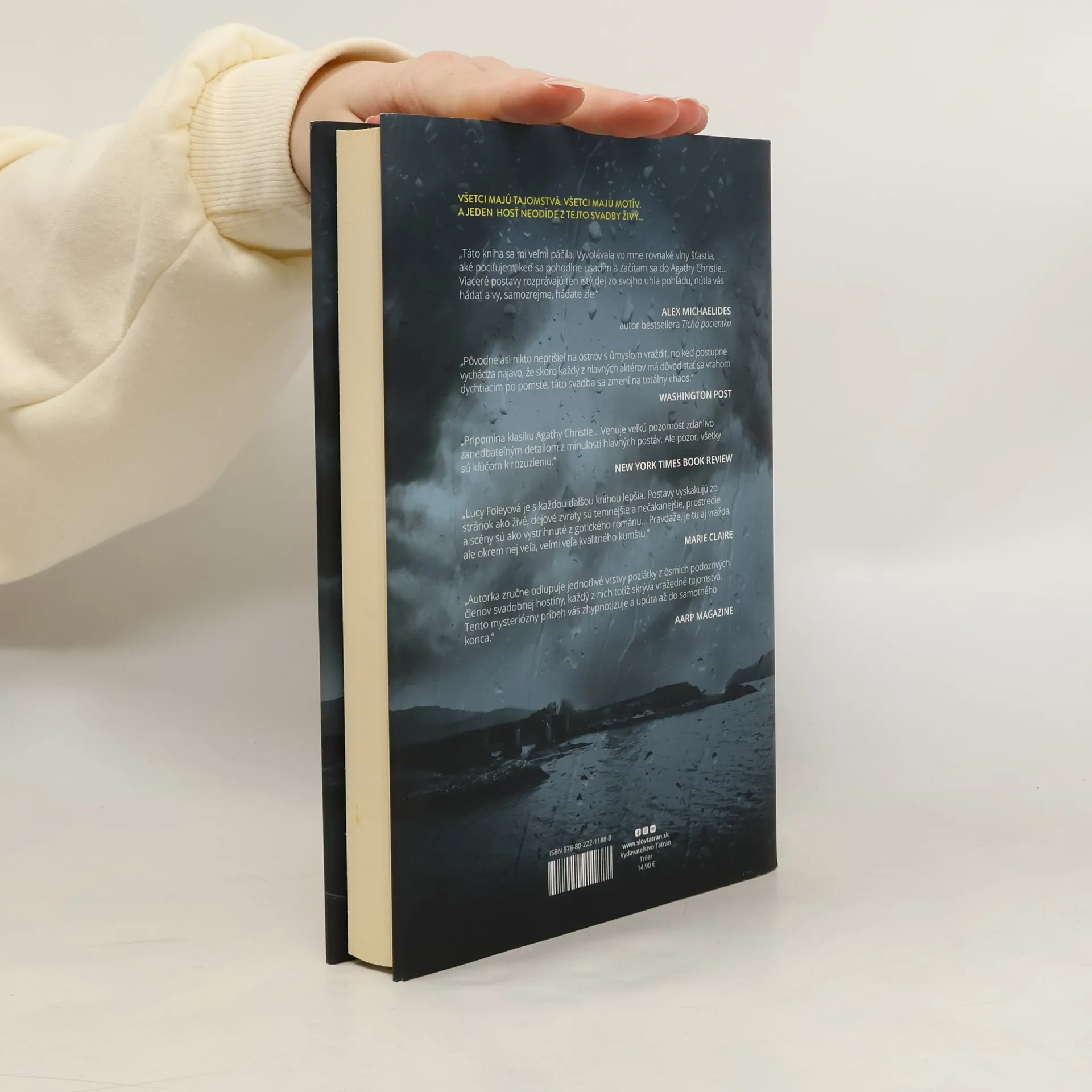"Všetci majú tajomstvo. Všetky majú motív. Jeden hosť neodíde z tejto svatby živý." Strhujúci a zamotaný triler štuktúrou evokuje štýl klasickej detektívky Agathy Christie. Na írsky ostrov neďaleko pobrežia prichádzajú hostia na neobyčajnú svadobnú hostinu. Príťažlivý ženích je vychádzajúca televízna hviezda, nevesta zase inteligentná a ambiciózna vydavateľka časopisov. Starí priatelia sa po čase stretnú a na povrch vyplávajú skryté tajomstvá. Sotva rozkrojili svadobnú tortu, jedného z hostí nájdu mŕtveho. A keď búrka znásobí svoju zúrivosť, všetci zostanú uväznení na ostrove. Jeden z nich je mŕtvy. Otázkou je, kto z nich je vrah.