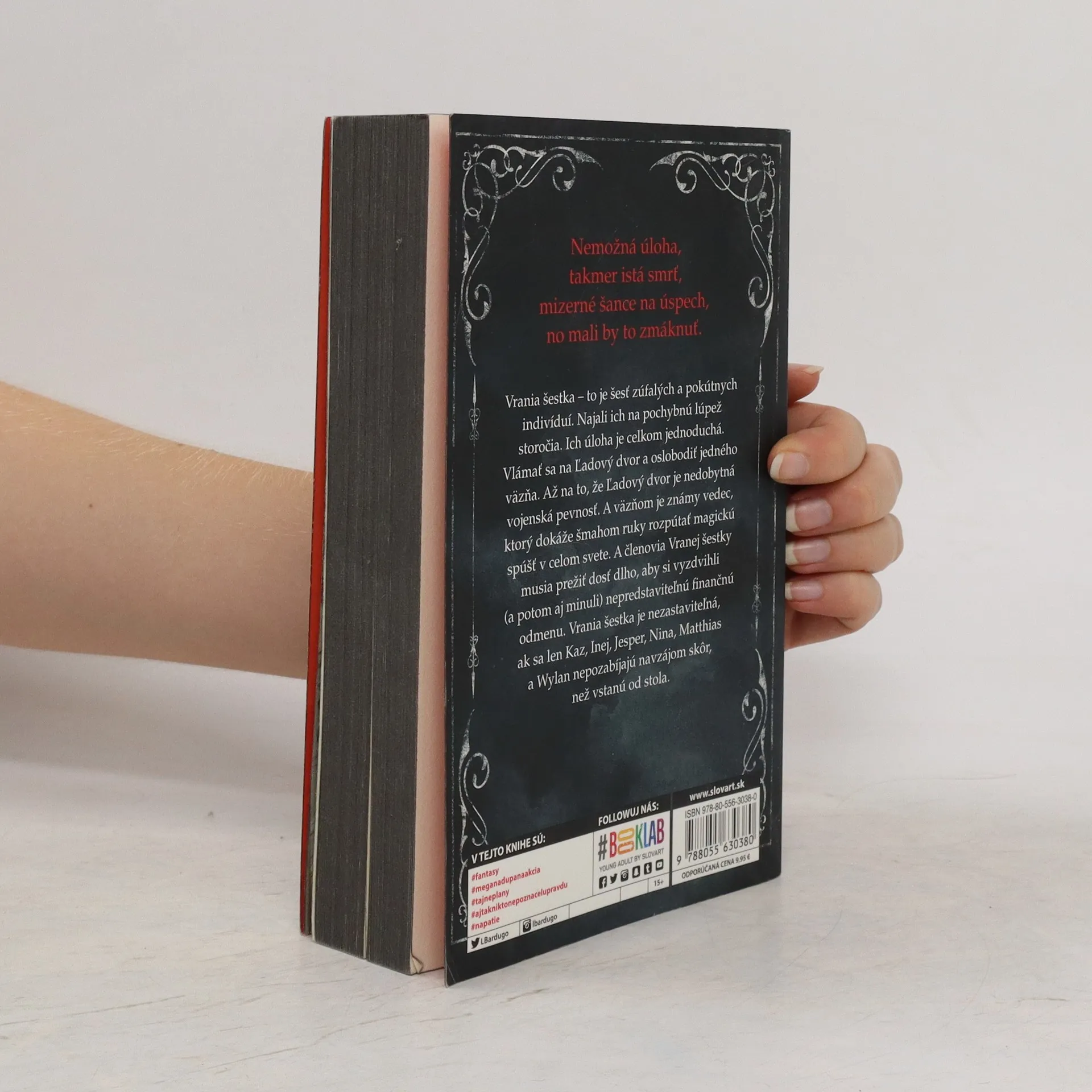 Šesť nebezpečných vyvrheľov. Jedna neuskutočniteľná úloha. Vrania šestka – to je šesť zúfalých a pokútnych indivíduí: trestanec (čo prahne po pomste), ostrostrelec (ktorý neodolá žiadnej stávke), zbeh (čo zutekal pred životom v luxuse jednej z najbohatších rodín), špiónka (známa ako Prízrak), lámačka (čo sa pretĺka spodinou sveta pomocou mágie) a zlodej (s darom vyviaznuť živý zovšadiaľ). Najali ich na pochybnú lúpež storočia. Ich úloha je celkom jednoduchá. Vlámať sa na Ľadový dvor a oslobodiť jedného väzňa. Až na to, že Ľadový dvor je nedobytná vojenská pevnosť, ktorú zatiaľ nikto, ale naozaj nikto nezdolal. Väzňom je známy vedec, ktorý dokáže šmahom ruky rozpútať magickú spúšť v celom známom svete. A členovia Vranej šestky musia prežiť dosť dlho, aby si vyzdvihli (a potom aj minuli) svoju nepredstaviteľnú finančnú odmenu. Vrania šestka je nezastaviteľná, ak sa len Kaz, Inej, Jesper, Nina, Matthias a Wylan nepozabíjajú navzájom skôr, než vstanú od stola. http://www.uniknihy.sk/produkt/vrania-sestka/