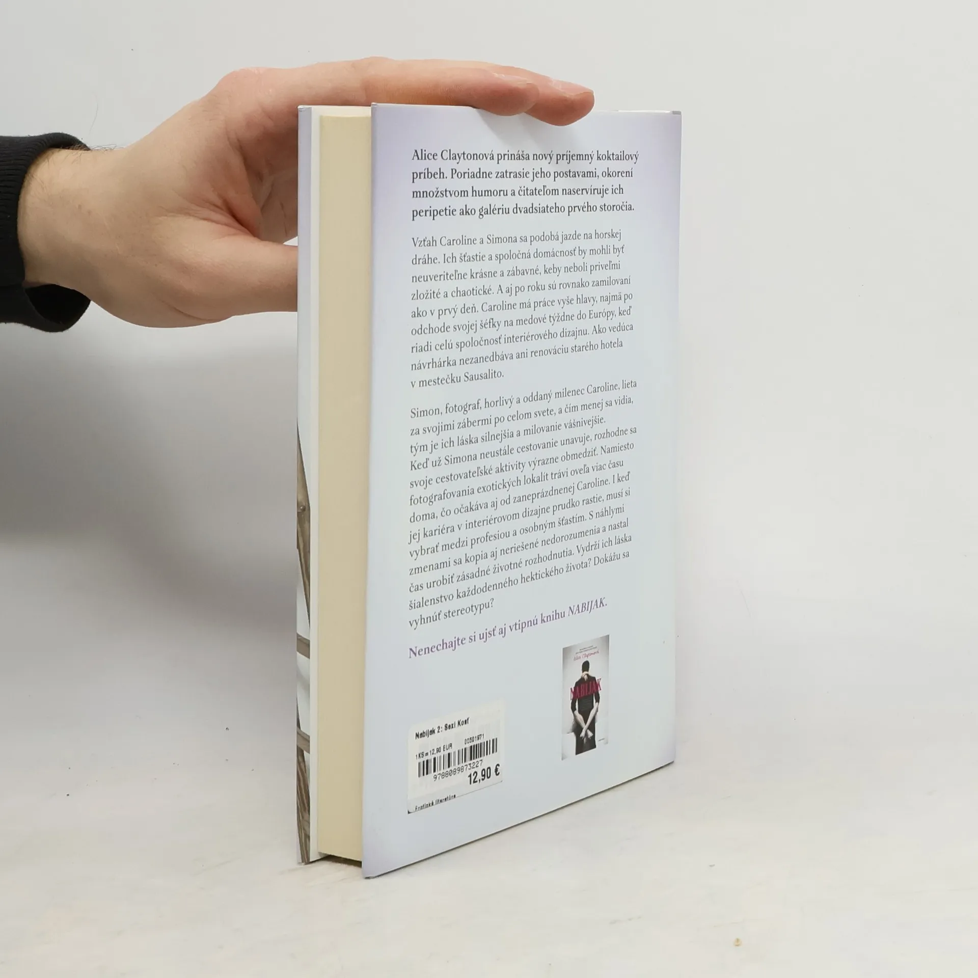 Alice Claytonová prináša nový príjemný koktailový príbeh. Poriadne zatrasie jeho postavami, okorení množstvom humoru a čitateľom naservíruje ich peripetie ako galériu dvadsiateho prvého storočia. Vzťah Caroline a Simona sa podobá jazde na horskej dráhe. Ich šťastie a spoločná domácnosť by mohli byť neuveriteľne krásne a zábavné, keby neboli priveľmi zložité a chaotické. A aj po roku sú rovnako zamilovaní ako v prvý deň. Caroline má práce vyše hlavy, najmä po odchode svojej šéfky na medové týždne do Európy, keď riadi celú spoločnosť interiérového dizajnu. Ako vedúca návrhárka nezanedbáva ani renováciu starého hotela v mestečku Sausalito. Simon, fotograf, horlivý a oddaný milenec Caroline, lieta za svojimi zábermi po celom svete, a čím menej sa vidia, tým je ich láska silnejšia a milovanie vášnivejšie. Keď už Simona neustále cestovanie unavuje, rozhodne sa svoje cestovateľské aktivity výrazne obmedziť. Namiesto fotografovania exotických lokalít trávi oveľa viac času doma, čo očakáva aj od zaneprázdnenej Caroline. I keď jej kariéra v interiérovom dizajne prudko rastie, musí si vybrať medzi profesiou a osobným šťastím. S náhlymi zmenami sa kopia aj neriešené nedorozumenia a nastal čas urobiť zásadné životné rozhodnutia. Vydrží ich láska šialenstvo každodenného hektického života? Dokážu sa vyhnúť stereotypu?