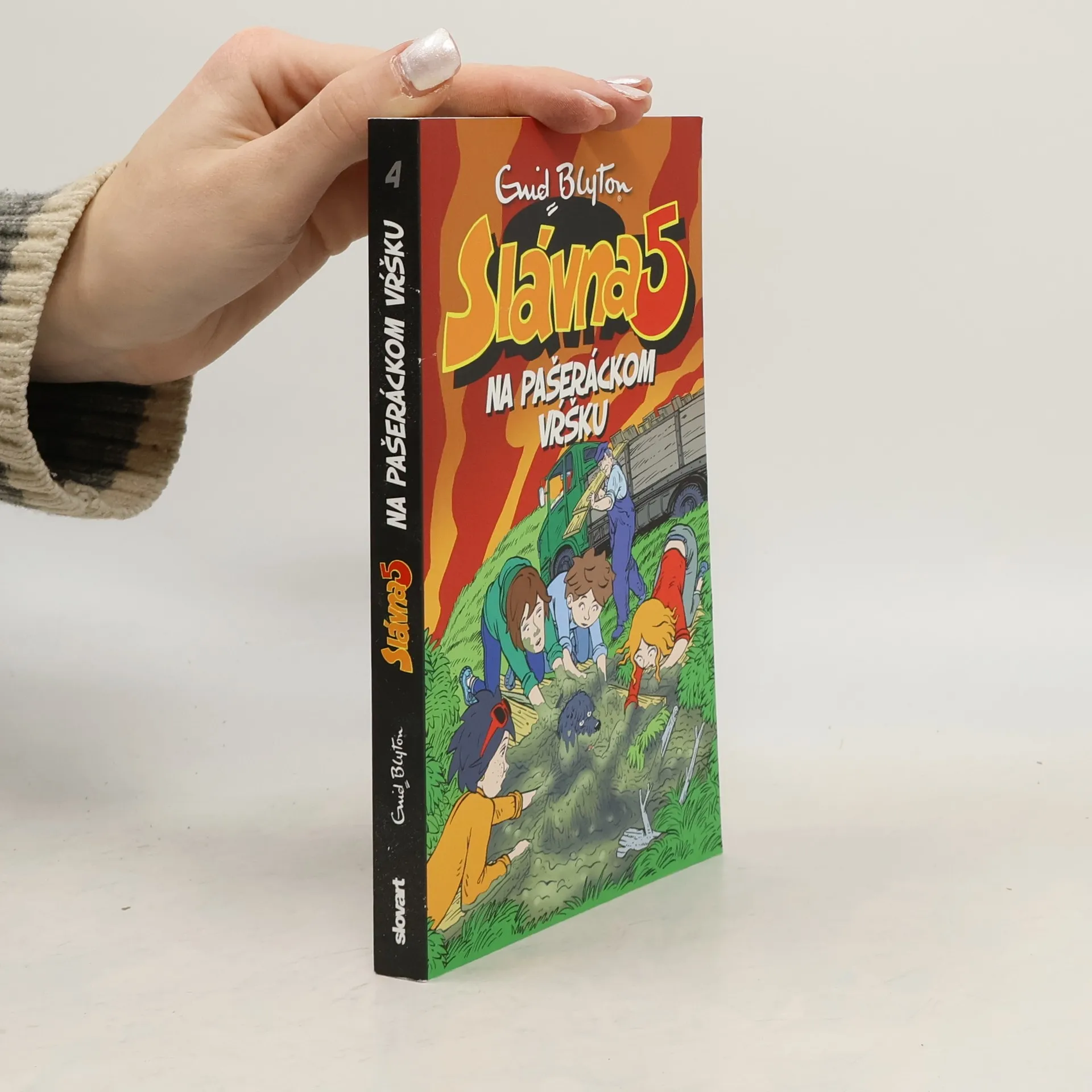 Veľkonočné prázdniny, tajomný kaštieľ na vŕšku, domáci pán nemá rád psy, strýčka Quentina unesú, Tim sa osvedčí ako neohrozený záchranár. To všetko nájdete v štvrtom pokračovaní dobrodružstiev Slávnej päťky.