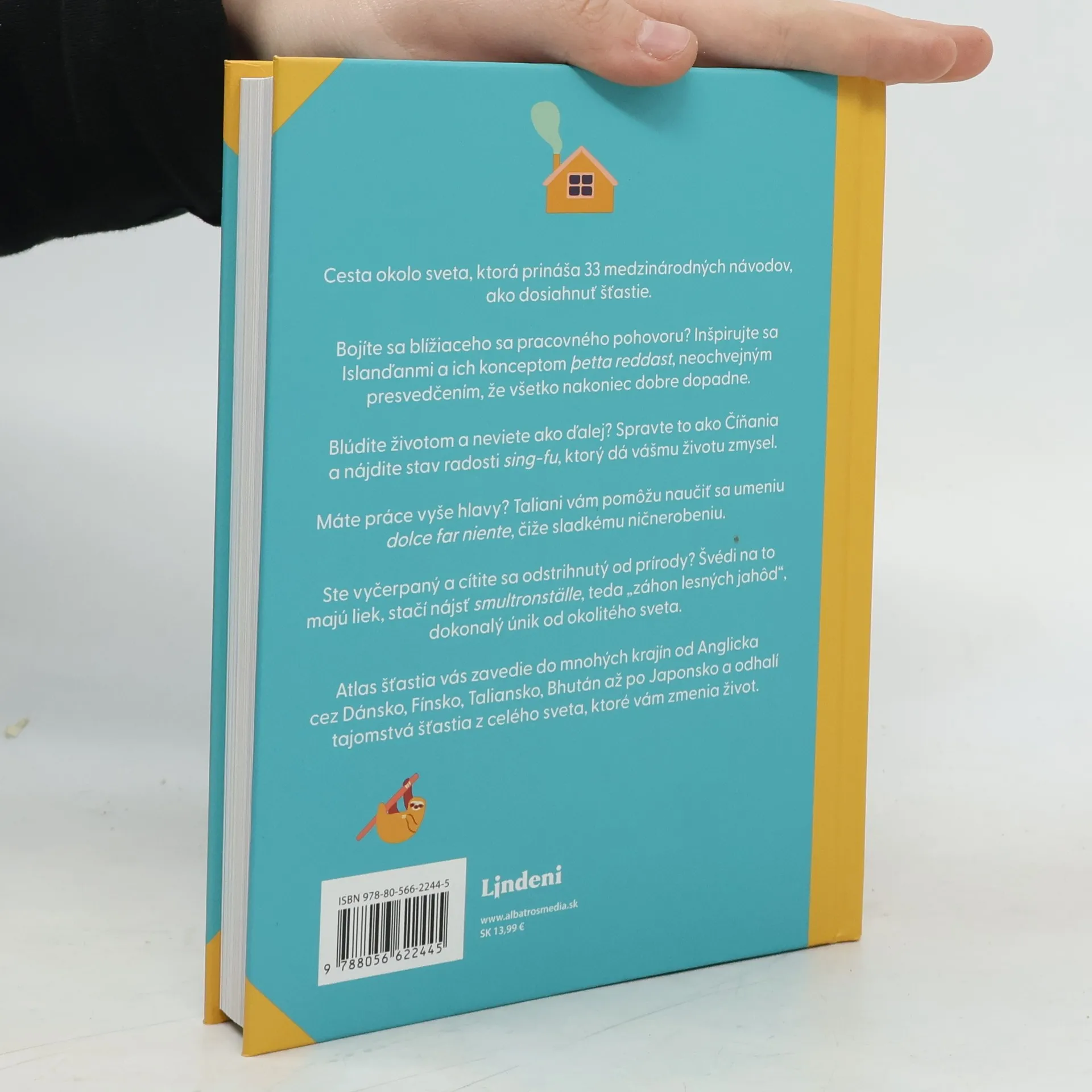 Cesta okolo sveta, ktorá prináša 33 medzinárodných návodov, ako dosiahnuť šťastie. Cesta okolo sveta, ktorá prináša 33 medzinárodných návodov, ako dosiahnuť šťastie. Bojíte sa blížiaceho sa pracovného pohovoru? Inšpirujte sa Islanďanmi a ich konceptom betta reddast, neochvejným presvedčením, že všetko nakoniec dobre dopadne. Blúdite životom a neviete ako ďalej? Spravte to ako Číňania a nájdite svoj stav radosti sing-fu, ktorý dá vášmu životu zmysel. Máte práce vyše hlavy? Taliani vám pomôžu naučiť sa umeniu dolce far niente, čiže sladkému ničnerobeniu. Ste vyčerpaní a cítite sa odstrihnutí od prírody? Švédi na to majú liek, stačí nájsť smultronställe, teda „záhon lesných jahôd“, dokonalý únik od okolitého sveta. Atlas šťastia vás zavedie do mnohých krajín od Anglicka cez Bhután, Írsko, Fínsko, Taliansko až po Japonsko a odhalí tajomstvá šťastia z celého sveta, ktoré vám zmenia život.