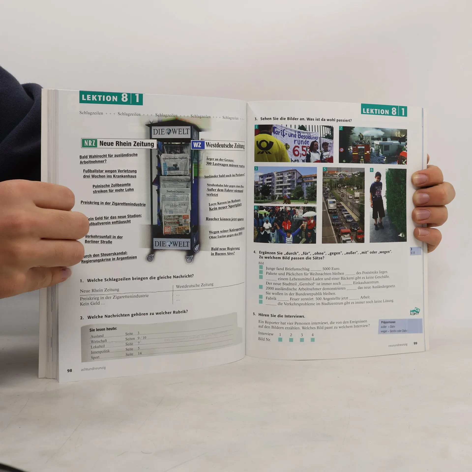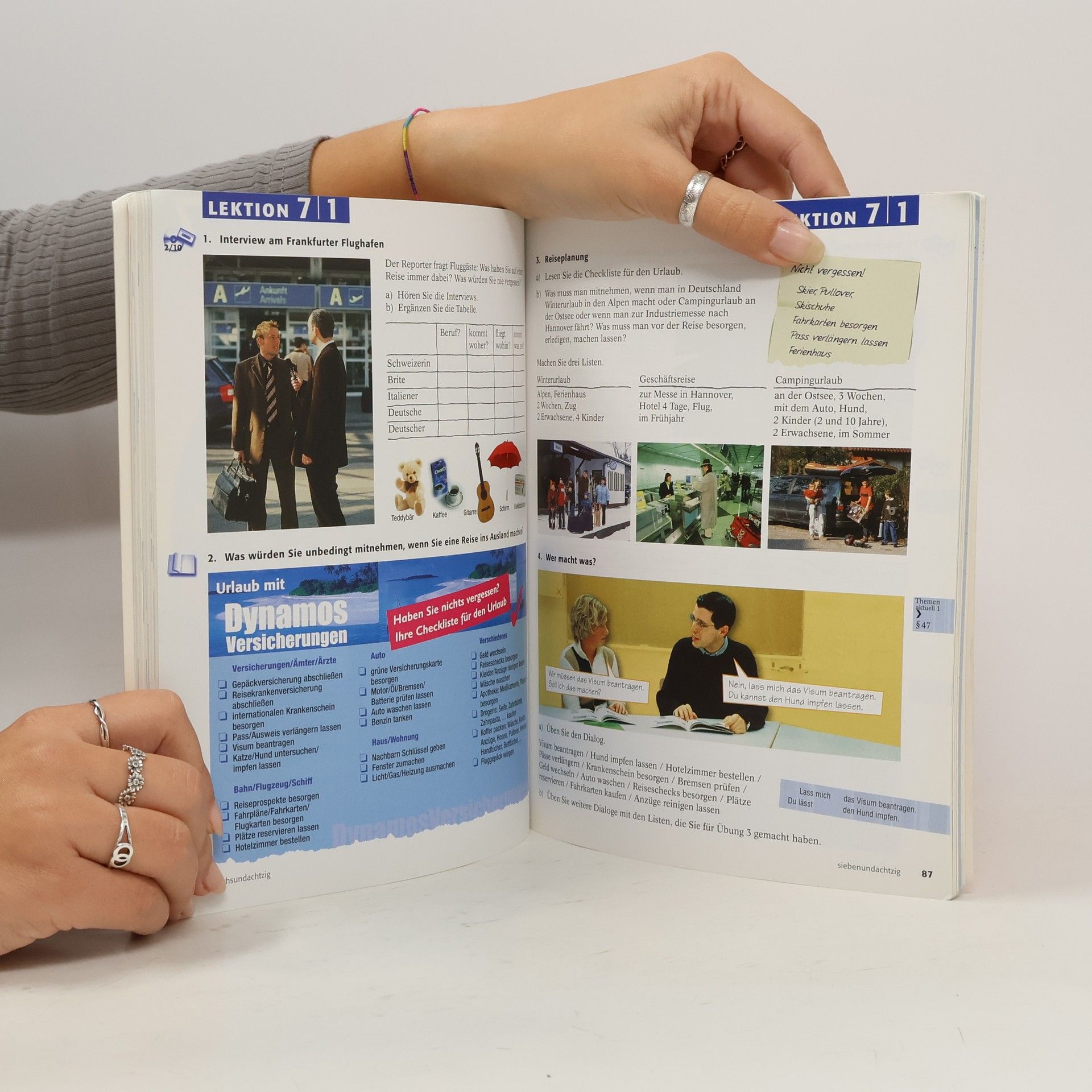 Zielniveau A2. Diese aktualisierte und visuell überarbeitete Ausgabe bietet neue Zeichnungen und Fotos in modernem Layout. Einige Inhalte wurden an die heutige Zeit angepasst. Die Zielgruppe sind erwachsene Anfänger in Grundstufenkursen an Volkshochschulen, Goethe-Instituten, Universitäten und privaten Sprachschulen weltweit, die Deutsch als Fremdsprache lernen. Das Lernziel umfasst die Kommunikation in Alltagssituationen, aktive Teilnahme an Gesprächen über allgemein interessante Themen sowie den Umgang mit einfachen literarischen und Sachtexten. Die Materialien führen bis zur Niveaustufe A1, A2 und B1 (Zertifikat Deutsch). Das Lehrwerk verfolgt eine kommunikative Zielsetzung, fördert authentische Gespräche und die Erarbeitung von Redemitteln für eine reibungslose Alltagskommunikation. Fertigkeitsspezifische Übungen sind in eine systematische Progression von Lexik und Grammatik eingebettet. Besondere Aufmerksamkeit gilt dem Hör- und Leseverstehen durch ausgewählte Texte. Grammatik wird induktiv aus den Texten erarbeitet, unterstützt durch Übersichten zur schnellen Orientierung. Zahlreiche Übungen und Kontrolllisten helfen, den Wortschatz sicher zu beherrschen. Das Lehrwerk umfasst 30 Lektionen und ist in drei- und zweibändigen Ausgaben erhältlich. In deutschsprachiger Umgebung wird ein Zeitbedarf von 12-14 Unterrichtseinheiten pro Lektion empfohlen.