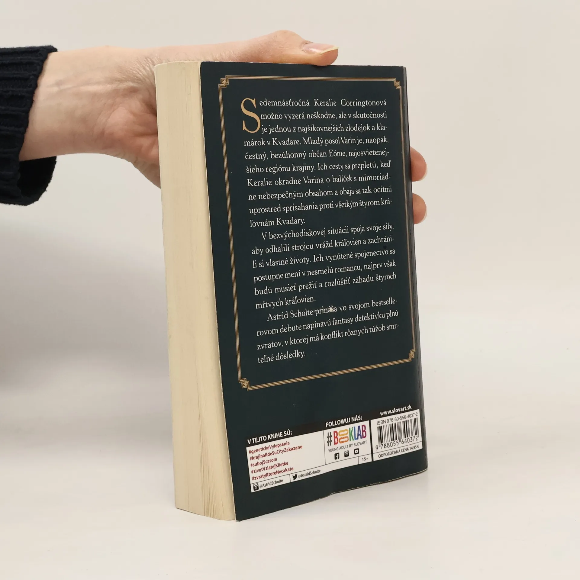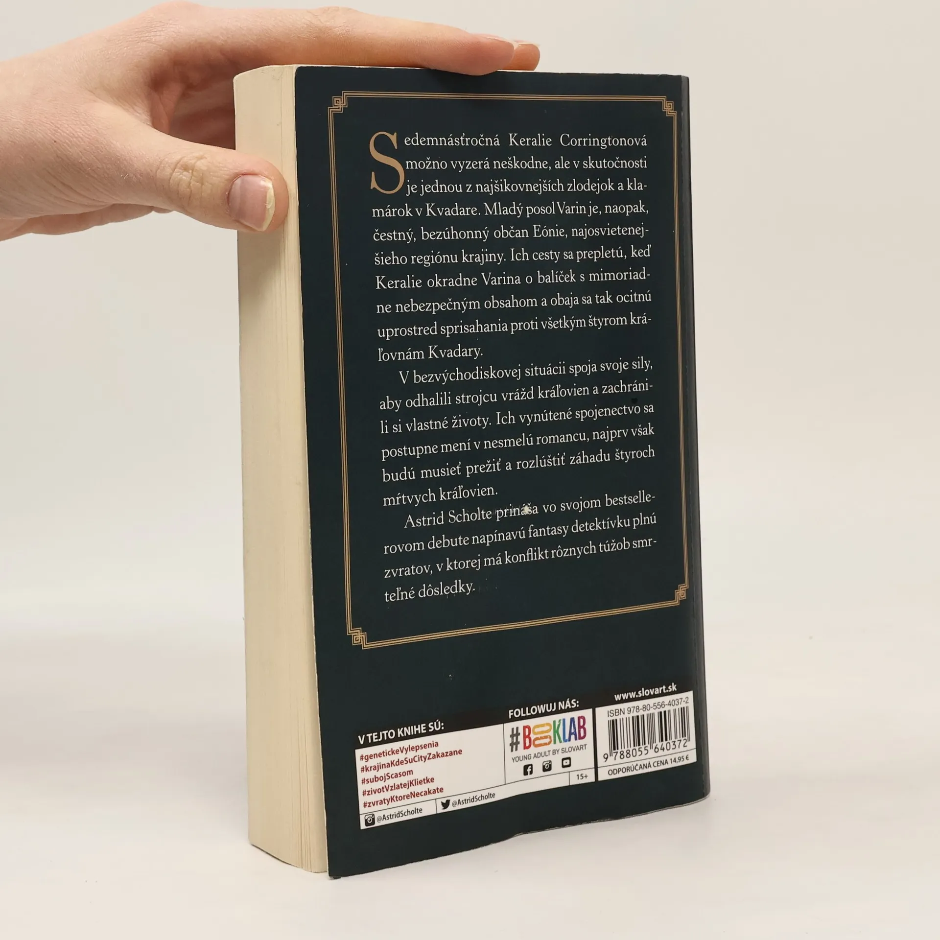 Napínavá fantasy detektívka plná zvratov, v ktorej má konflikt rôznych túžob smrteľné dôsledky. Sedemnásťročná Keralie Corringtonová možno vyzerá neškodne, ale v skutočnosti je jednou z najšikovnejších zlodejok a klamárok v Quadare. Mladý posol Varin je, naopak, čestný, bezúhonný občan Eónie, najosvietenejšieho regiónu krajiny. Ich cesty sa prepletú, keď Keralie okradne Varina o balíček a obaja sa tak ocitnú uprostred sprisahania proti všetkým štyrom kráľovnám Quadary. V bezvýchodiskovej situácii musia spojiť svoje sily, pokúsiť sa odhaliť strojcu vrážd kráľovien a zachrániť si vlastné životy. Ich vynútené spojenectvo sa postupne mení v nesmelú romancu, najprv však budú musieť prežiť a rozlúštiť záhadu štyroch mŕtvych kráľovien.
