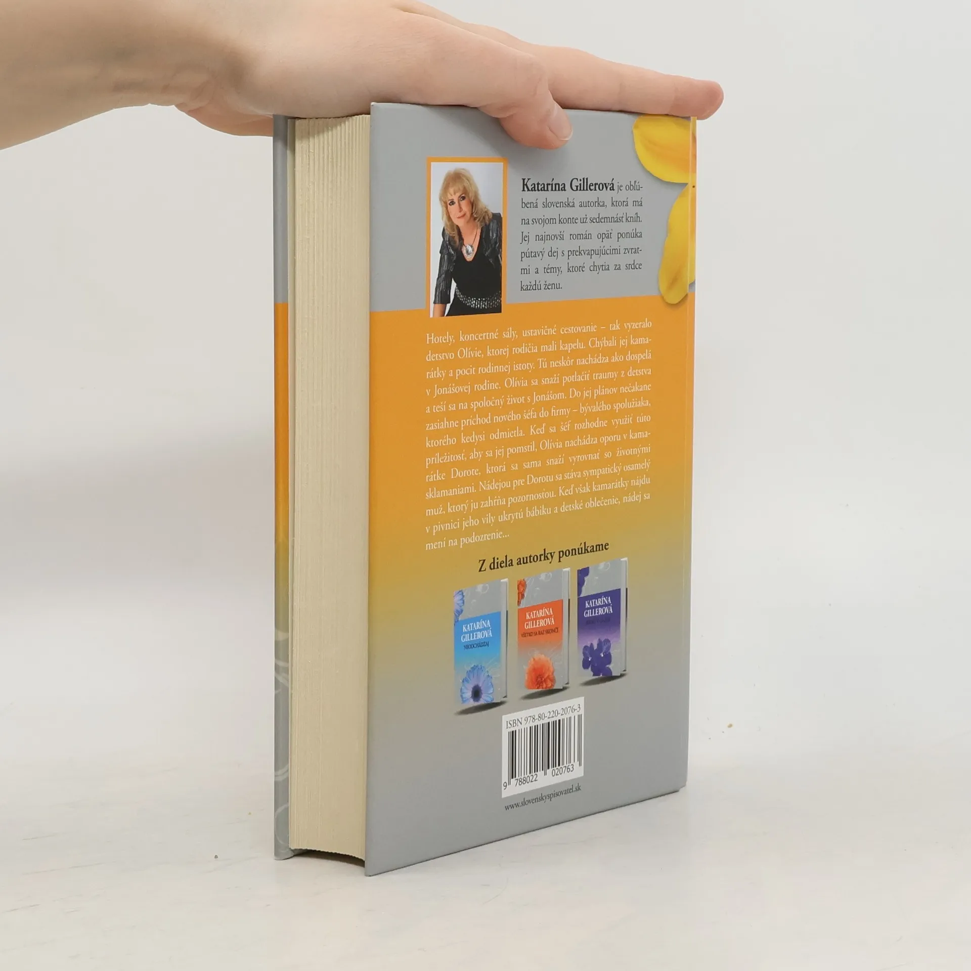 Katarína Gillerová: Dievča v zrkadle /text na obálku/ Katarína Gillerová je obľúbená slovenská autorka, ktorá má na svojom konte už šestnásť kníh. Jej najnovší román opäť ponúka pútavý dej s prekvapujúcimi zvratmi a témy, ktoré chytia za srdce každú ženu. Hotely, koncertné sály, ustavičné cestovanie – tak vyzeralo detstvo Olívie, ktorej rodičia mali kapelu. Chýbali jej kamarátky a pocit rodinnej istoty. Tú neskôr nachádza ako dospelá v Jonášovej rodine. Olívia sa snaží potlačiť traumy z detstva a teší sa na spoločný život s Jonášom. Do jej plánov nečakane zasiahne príchod nového šéfa do firmy – bývalého spolužiaka, ktorého kedysi odmietla. Keď sa šéf rozhodne využiť túto príležitosť, aby sa jej pomstil, Olívia nachádza oporu v kamarátke Dorote, ktorá sa sama snaží vyrovnať so životnými sklamaniami. Nádejou pre Dorotu sa stáva sympatický osamelý muž, ktorý ju zahŕňa pozornosťou. Keď však kamarátky nájdu v pivnici jeho vily ukrytú bábiku a detské oblečenie, nádej sa mení na podozrenie...
