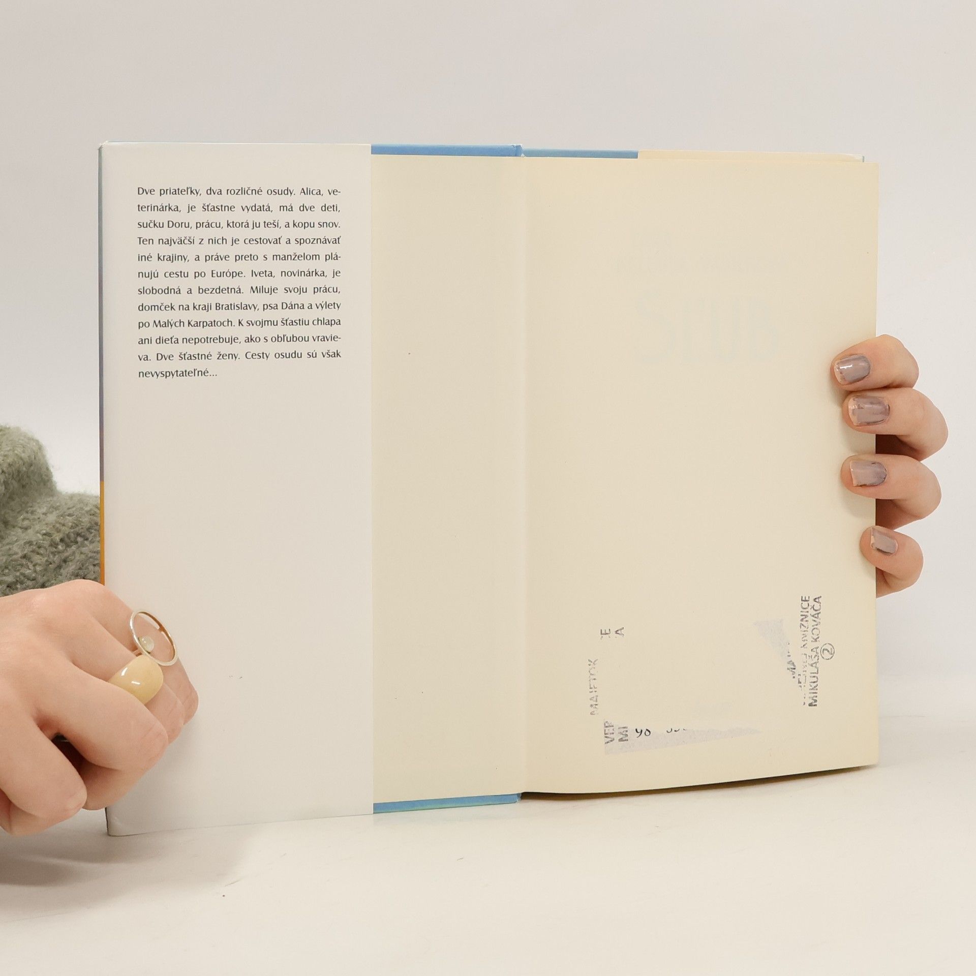 Dve priateľky. Alica, veterinárka, je šťastne vydatá, má dve deti a prácu, ktorá ju teší. Iveta, novinárka, je slobodná a bezdetná. Miluje svoju prácu, domček na kraji Bratislavy, výlety po Malých Karpatoch. K svojmu šťastiu chlapa ani dieťa nepotrebuje, ako s obľubou vravieva. Dve šťastné ženy. Cesty osudu sú však nevyspytateľné...