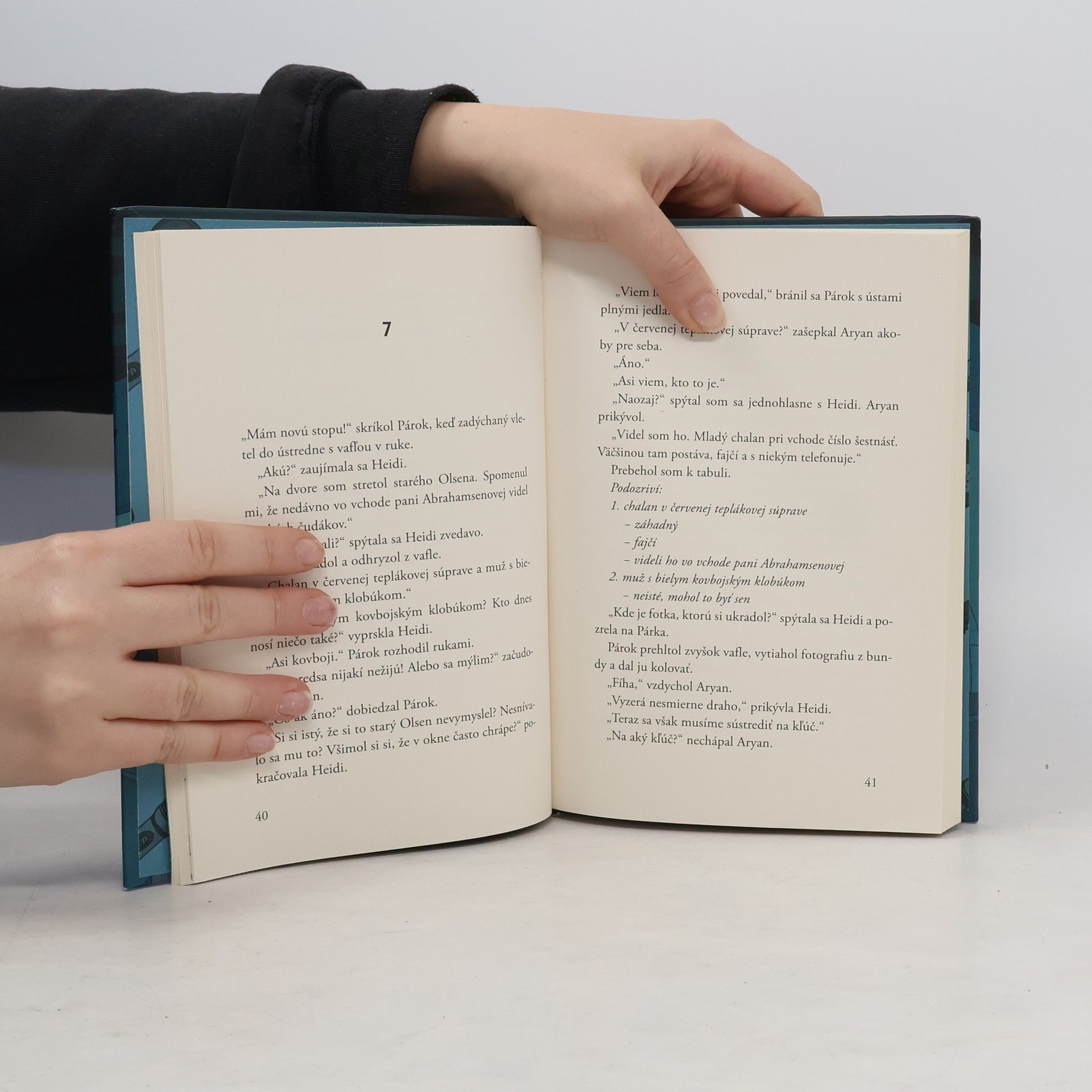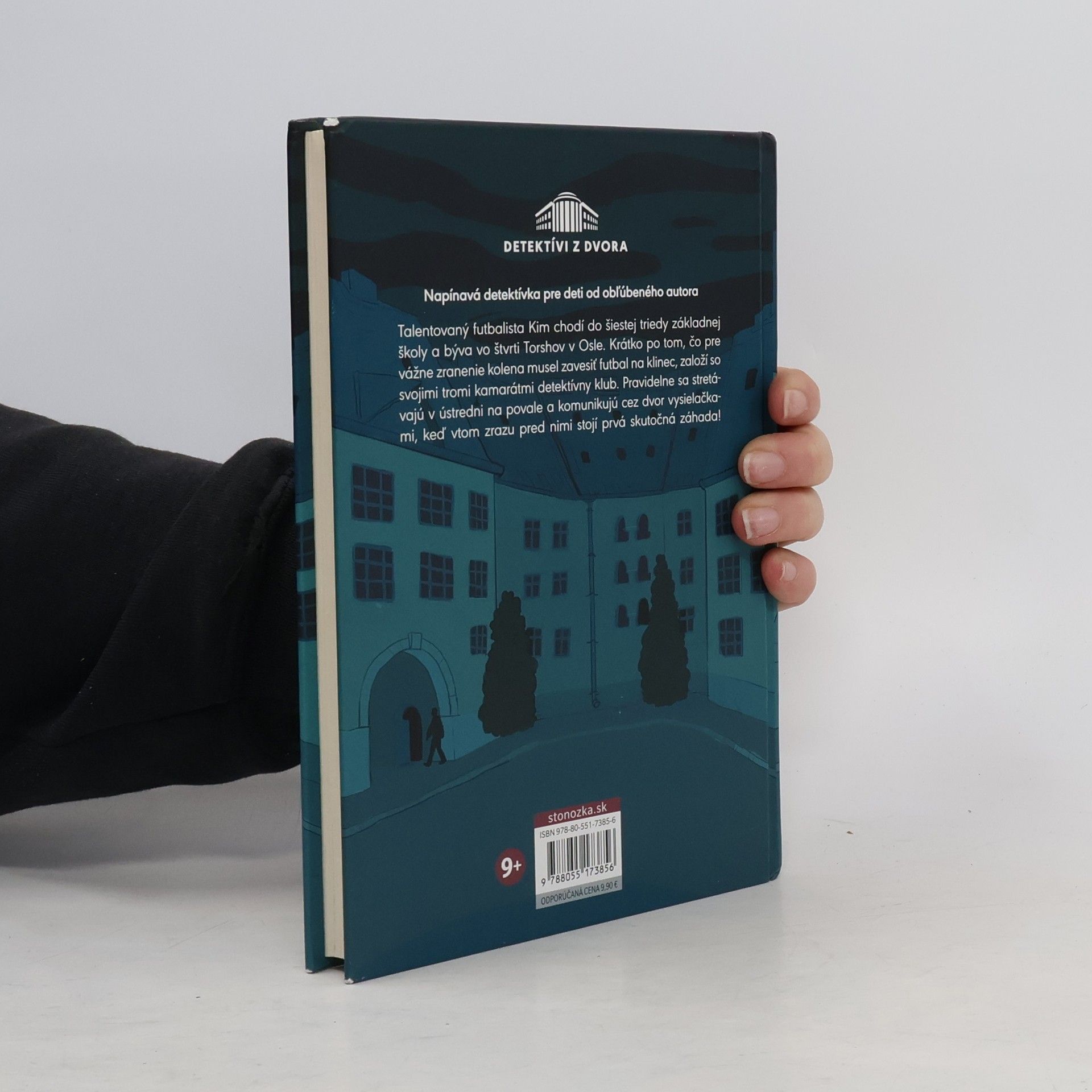 Jeden z najpredávanejších spisovateľov detektívnych príbehov Samuel Bjork napísal knižku pre deti! Talentovaný futbalista Kim chodí do šiestej triedy základnej školy a býva vo štvrti Torshov v Osle. Po tom, čo pre vážne zranenie kolena musel zavesiť futbal na klinec, rozhodne sa založiť so svojimi tromi kamarátmi Párkom, Aryanom a Heidi detektívny klub. Pravidelne sa stretávajú v ústredni, ktorú si vytvorili v bývalej sušiarni bielizne na povale, komunikujú vysielačkami, často si čítajú Veľkú príručku pre detektívov, v ktorej sa píše o všetkom, čo detektív potrebuje vedieť, keď vtom zrazu pred nimi stojí prvá skutočná záhada! Dozvedia sa, že niekto ukradol perlový náhrdelník pani Abrahamsenovej. A nielen to! Obviňujú z toho Aryanovu mamu. Detektívi z dvora sa rozhodnú prípad vyriešiť. Kto je však muž s bielym kovbojským klobúkom a chalan v červenej teplákovej súprave?