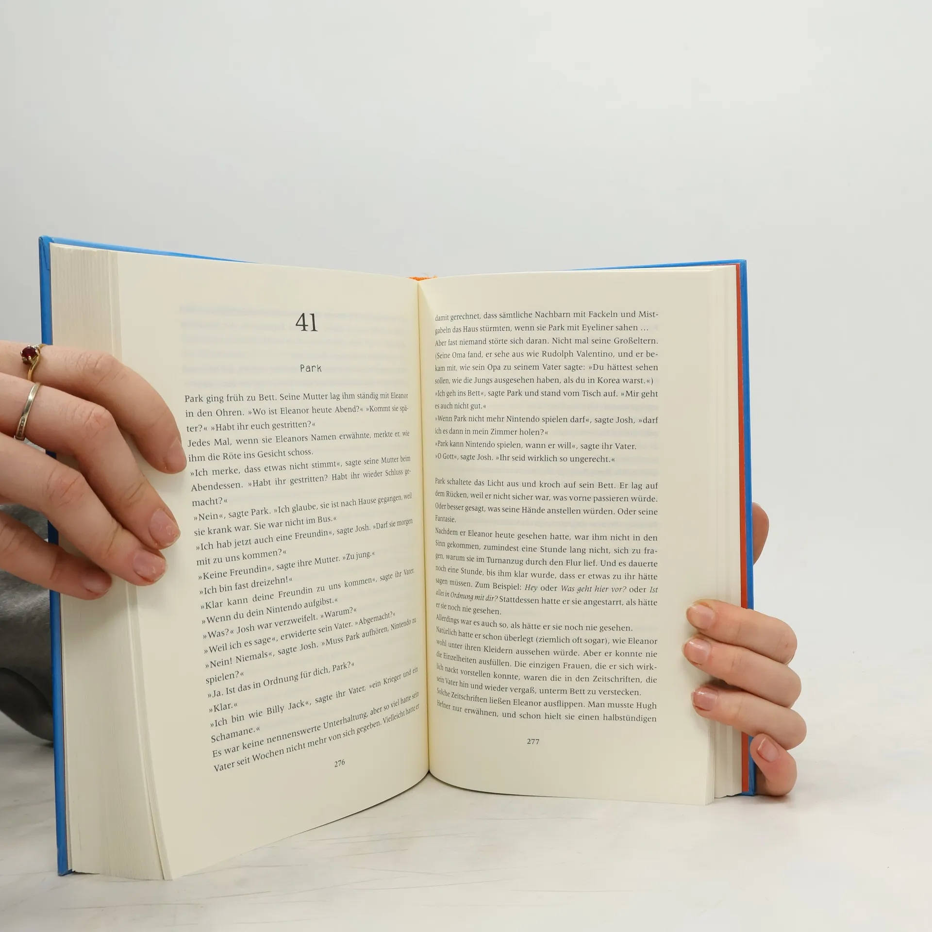 Sie sind beide Außenseiter, aber grundverschieden: Die pummelige Eleanor und der gut aussehende, aber zurückhaltende Park. Als er ihr im Schulbus den Platz neben sich frei macht, halten sie wenig voneinander. Park liest demonstrativ und Eleanor ist froh, ignoriert zu werden. In der Schule ist sie das Opfer übler Mobbing-Attacken und zu Hause hat sie mit vier Geschwistern und einem tyrannischen Stiefvater nur Ärger. Doch als sie beginnt, Parks Comics mitzulesen, entwickelt sich ein Dialog zwischen den beiden. Zögerlich tauschen sie Kassetten, Meinungen und Vorlieben aus. Dass sie sich ineinander verlieben, scheint unmöglich. Doch ihre Annäherung gehört zum Intensivsten, was man über die erste Liebe lesen kann.