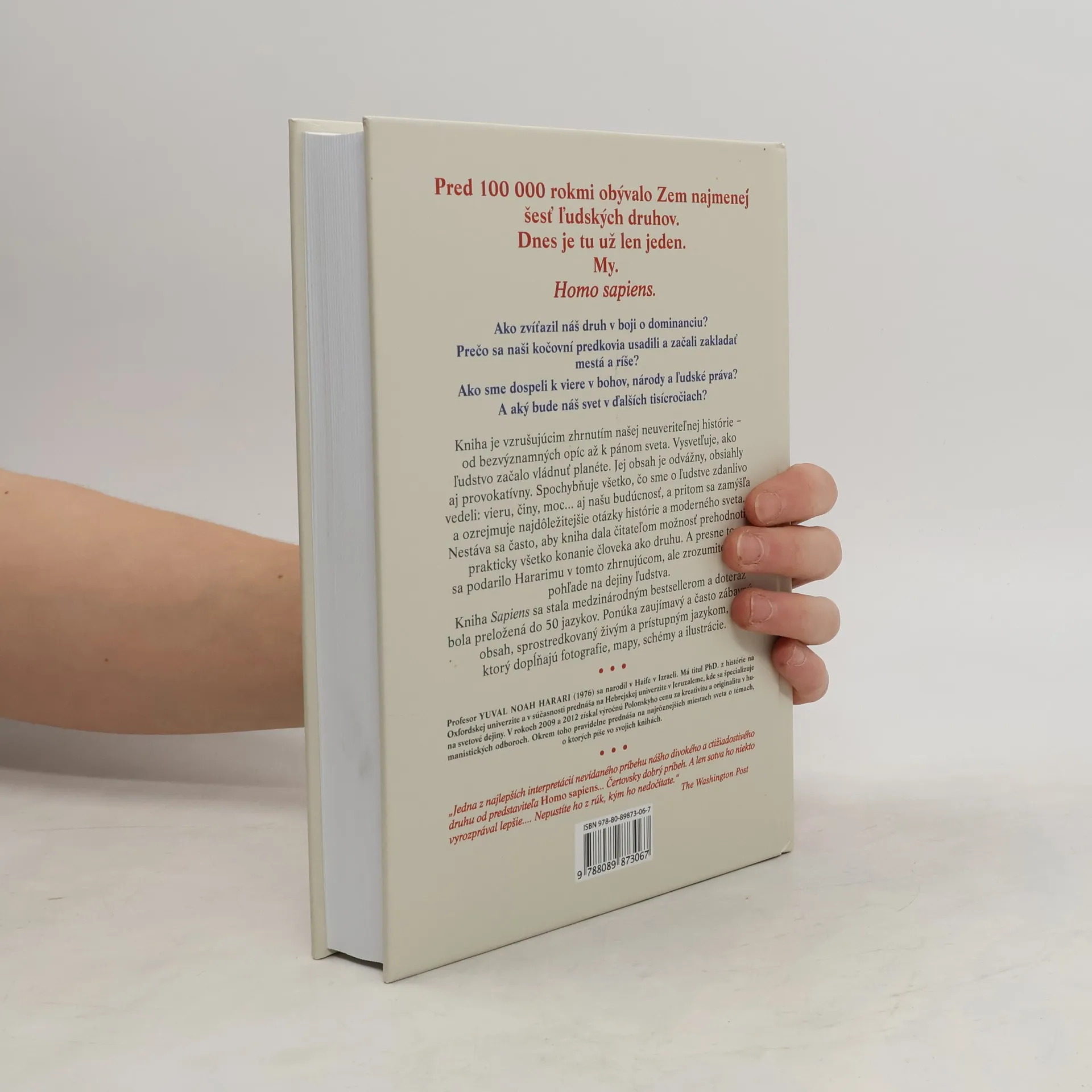Pred 100 000 rokmi žilo na Zemi najmenej šesť ľudských druhov, dnes je tu len Homo sapiens. Autor, Dr. Yuval Noah Harari, známy vizionársky historik, skúma históriu človeka od jeho počiatkov až po súčasnosť, pričom sa zameriava na tri kľúčové revolúcie: kognitívnu, poľnohospodársku a vedeckú. Kniha sa pýta, ako sme sa stali dominantným druhom, prečo sa naši predkovia usadili a začali budovať mestá a ríše, a aký vplyv má na nás viera v bohov, národy či ľudské práva. Harari čerpá z rôznych disciplín, ako sú história, biológia a ekonómia, aby preskúmal, ako formovali naše spoločnosti a vzťahy s prírodou. Klade otázky o našej šťastnej existencii, o tom, či môžeme oslobodiť naše správanie od dedičstva predkov, a čo môžeme urobiť pre ovplyvnenie budúcnosti. Kniha provokuje zamyslenie nad našou históriou a budúcnosťou, pričom skúma vplyv ľudského správania a vedeckého pokroku na zákony prírody. Tento vzrušujúci prehľad našej histórie, od bezvýznamných opíc po pánov sveta, spochybňuje naše presvedčenia a činy. Harari ponúka čitateľom možnosť prehodnotiť všetko, čo sme o ľudstve vedeli. Kniha sa stala medzinárodným bestsellerom, je písaná živým jazykom a doplnená o fotografie, mapy a ilustrácie, čo zvyšuje jej atraktivitu.