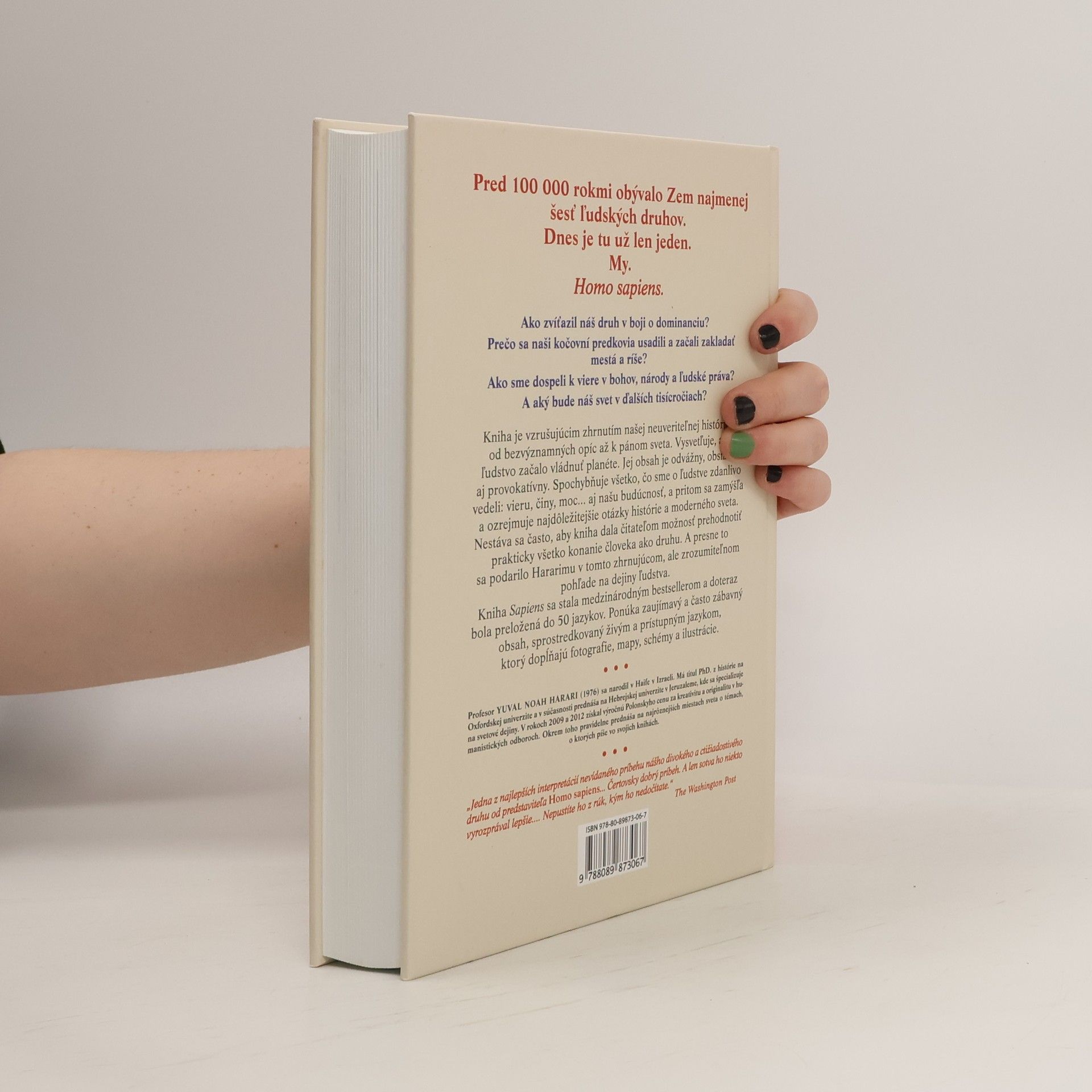 Pred 100 000 rokmi žilo na Zemi najmenej šesť ľudských druhov, dnes je tu len Homo sapiens. Autor, Dr. Yuval Noah Harari, známy vizionársky historik, skúma históriu človeka od jeho počiatkov až po súčasnosť, pričom sa zameriava na tri kľúčové revolúcie: kognitívnu, poľnohospodársku a vedeckú. Kniha sa pýta, ako sme sa stali dominantným druhom, prečo sa naši predkovia usadili a začali budovať mestá a ríše, a aký vplyv má na nás viera v bohov, národy či ľudské práva. Harari čerpá z rôznych disciplín, ako sú história, biológia a ekonómia, aby preskúmal, ako formovali naše spoločnosti a vzťahy s prírodou. Klade otázky o našej šťastnej existencii, o tom, či môžeme oslobodiť naše správanie od dedičstva predkov, a čo môžeme urobiť pre ovplyvnenie budúcnosti. Kniha provokuje zamyslenie nad našou históriou a budúcnosťou, pričom skúma vplyv ľudského správania a vedeckého pokroku na zákony prírody. Tento vzrušujúci prehľad našej histórie, od bezvýznamných opíc po pánov sveta, spochybňuje naše presvedčenia a činy. Harari ponúka čitateľom možnosť prehodnotiť všetko, čo sme o ľudstve vedeli. Kniha sa stala medzinárodným bestsellerom, je písaná živým jazykom a doplnená o fotografie, mapy a ilustrácie, čo zvyšuje jej atraktivitu.