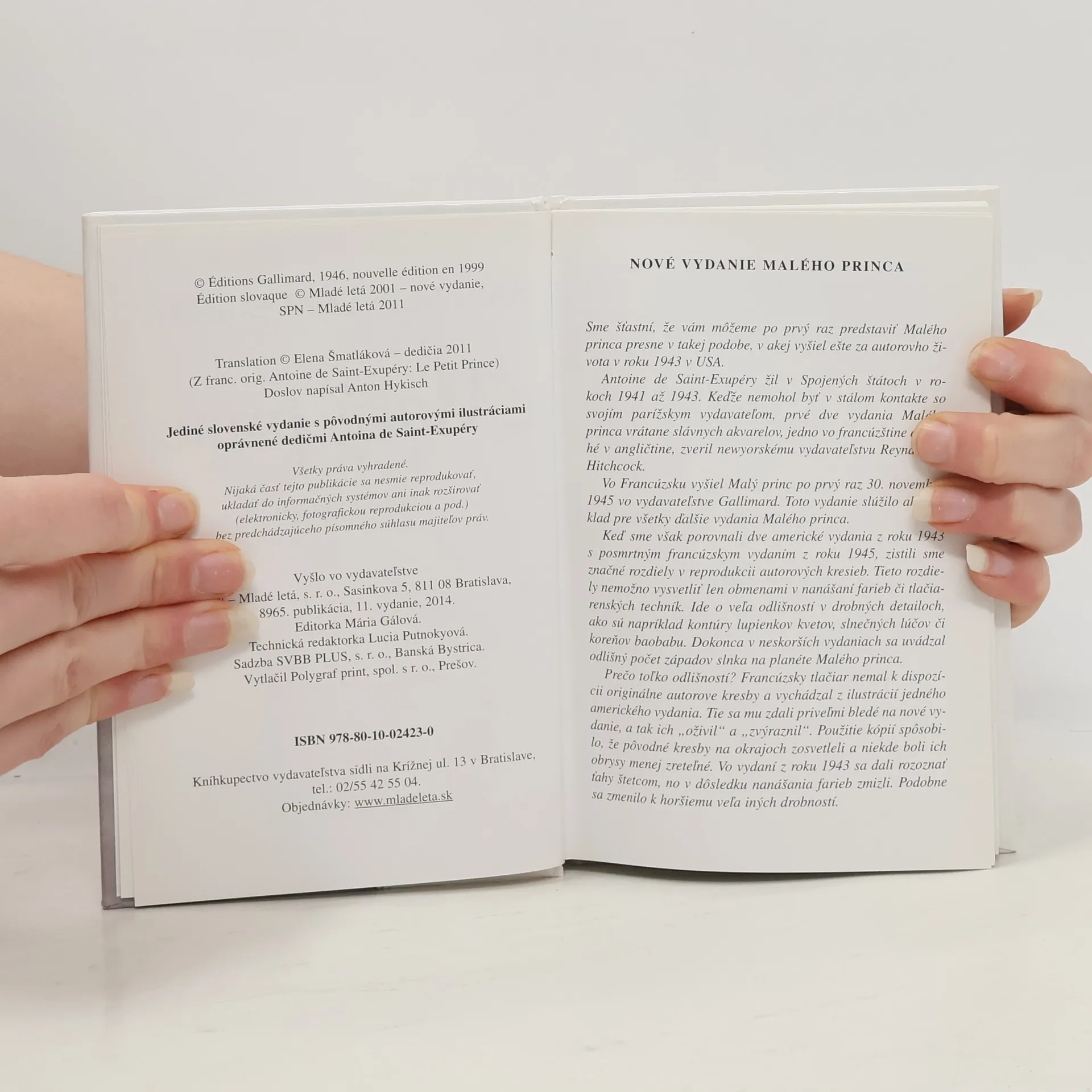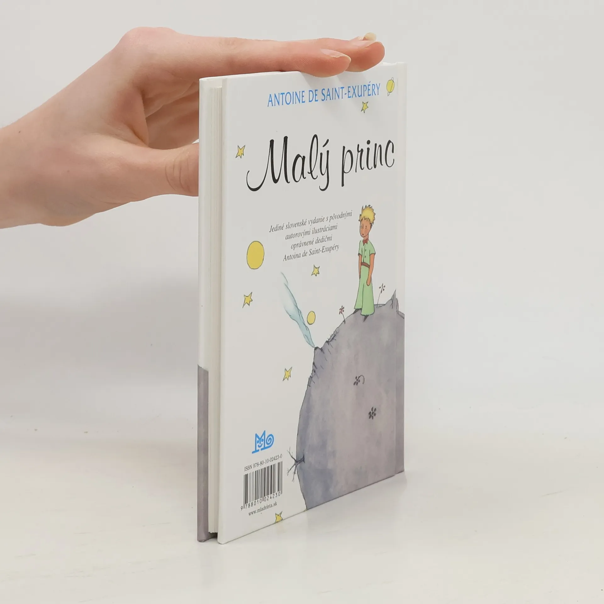 Jediné slovenské vydanie s autorovými ilustráciami oprávnené dedičmi Antoina de Saint-Exupéry. Malým i veľkým čitateľom tohto skvostného dielka ponúkame Malého princa v malom formáte a v takej podobe, v akej ho napísal a nakreslil autor a ako vyšiel ešte za jeho života. Saint-Exupéry svoju knižku s čistým detským pohľadom na svet venoval priateľovi. Veď všetci dospelí boli najprv deťmi. No máloktorý sa na to pamätá.