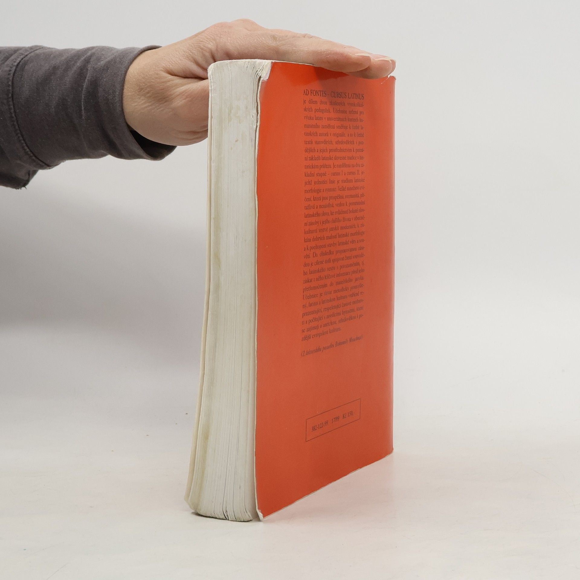 AD FONTES CURSUS LATINUS je dílem dvou zkušených vysokoškolských pedagožek. Učebnice určená pro výuku latiny v univerzitních kurzech humanitního zaměření zve k četbě textů latinských autorů v originále, a to starověkých, středověkých i pozdějších. Jejich prostřednictvím vede k poznání základů latinské slovesné tradice v historickém průřezu. Publikace je rozdělena na dva základní stupně – cursus I a cursus II –, jejichž jednotící linie je studium latinské morfologie a syntaxe. Velké množství rozmanitých, nenásilných cvičení vede k porozumění latinskému slovu, ke zvládnutí bohaté slovní zásoby i k vnímání jejího dalšího života v obecně-kulturní vrstvě jazyků moderních. Umožňuje také získání dobrých znalostí latinské morfologie a pochopení stavby latinské věty a souvětí. Do důsledku dodržovanou zásadou je úsilí spojovat čtení souvislého latinského textu s porozuměním, tj. získat z něho klíčové informace před jeho přetlumočením do mateřského jazyka