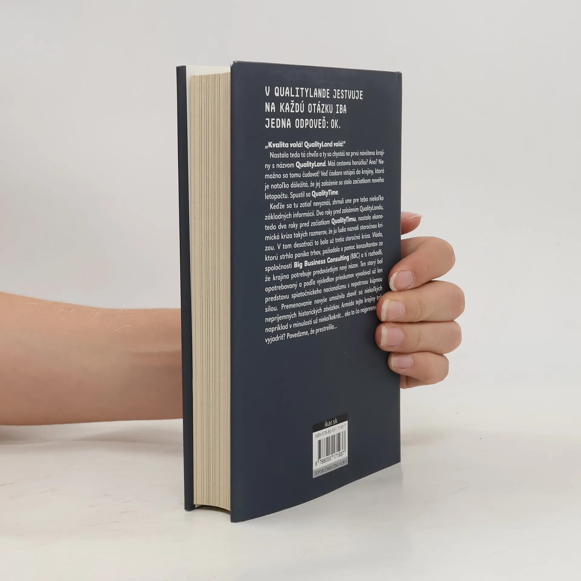 V QualityLande je všetko optimalizované pomocou algoritmov. Služba QualityPartner nájde ideálneho partnera, osobný asistent vám pomôže s orientáciou a drony vám prinesú pivo, skôr než si naň spomeniete. V tomto svete sú ľudia, roboti a algoritmy prepojení, všetko je súčasťou korporácií a každý patrí do určitej spoločenskej triedy. Vaše meno a profil odhaľujú väčšinu dôležitých informácií, a rozhodovanie je zjednodušené na jedinú odpoveď: ok. Peter Nezamestnaný, bezvýznamný správca lisu na kovový odpad, sa ocitne v ťažkej situácii, keď jeho priateľka odíde po upozornení QualityPadu na lepšie možnosti. Avšak Peter si uvedomuje, že robotickí obyvatelia QualityLandu čelí existenciálnej kríze. Narazí na drona so strachom z lietania, sexrobota s poruchou erekcie a vojnového robota trpiaceho PTSD. Keď dostane príkaz zničiť všetky chybné umelé inteligencie, začne mať pochybnosti o technológii, ktorá ovláda všetkých. Prečo sa stroje čoraz viac podobajú ľuďom, zatiaľ čo ľudia sa stávajú strojmi? Možno sú títo roboti jeho jediní priatelia. Marc-Uwe Kling vytvára zarážajúcu a satirickú víziu budúcnosti, ktorá je vizionárska, napínavá a rovnako zábavná ako jeho predchádzajúce diela.