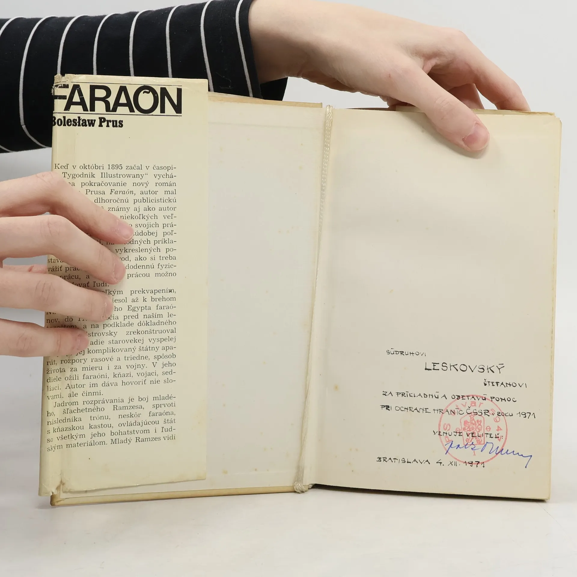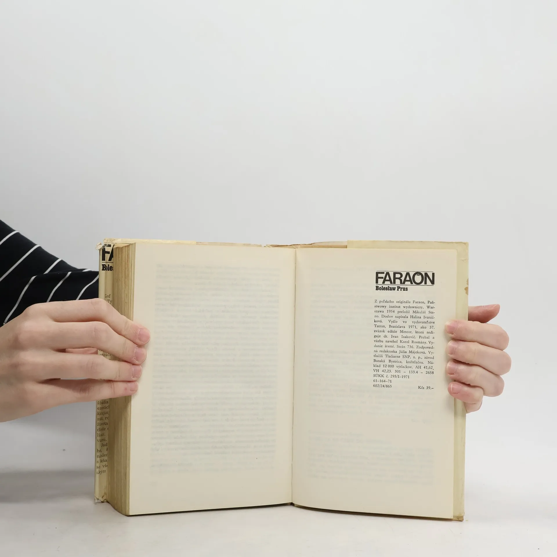 Keď v októbri 1895 začal v časopise ,,Tygodnik Ilustrowany" vychádzať na pokračovanie nový román Bolesława Prusa Faraón, autor mal už za sebou dlhoročnú publicistickú činnosť a bol už známy aj ako autor početných noviel i niekoľkých veľkých románov. V týchto svojich prácach zachycovalživot súdobej poľskej spoločnosti, na vhodných príkladoch a zaujímavo vykreslených postavách učil svoj národ, ako si treba vážiť prácu, ťažkú, každodennú, fyzickú prácu, a ako len prácou možno zošľachťovať ľudí. Bolo teda veľkým prekvapením, keď sa autor preniesol až k brehom Nílu, do starovekého Egypta faraónov, do 11. storočia pred naším letopočtom, a na podklade dôkladného štúdia majstrovsky zrekonštruoval exotické pozadie starovekej vyspelej krajiny, jej komplikovaný štátny aparát, rozpory rasové a triedne, spôsob života za mieru i za vojny. V jeho diele ožili faraóni, kňazi, vojaci, sedliaci. Autor im dáva hovoriť nie slovami, ale činmi. Jadrom rozprávania je boj mladého, šľachetného Ramzesa, sprvoti následníka trónu, neskôr faraóna, s kňazskou kastou, ovládajúcou štát so všetkým jeho bohatstvom i ľudským materiálom. Mladý Ramzes vidí túto moc kňazov, búri sa proti nej, chce ju podlomiť a vládnuť bez jej zasahovania. Predstaviteľom kňazskej kasty je múdry a rozvážny veľkňaz Herhor. 4. slovenské vydanie.