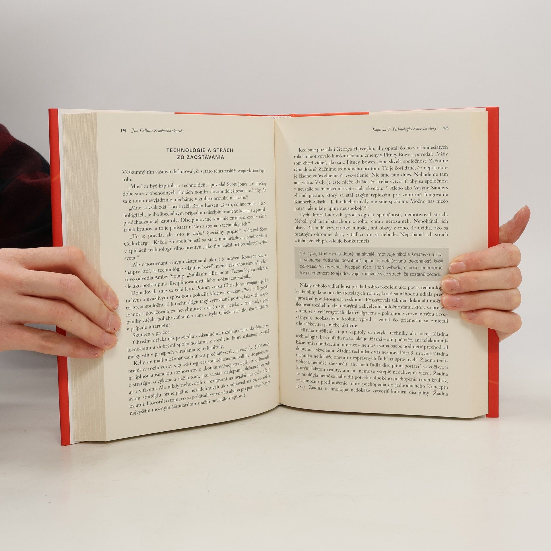 Kniha Good to Great, založená na 5-ročnom výskumnom projekte, odpovedá na otázku: "Môže sa dobrá spoločnosť stať skvelou, a ak áno, tak ako?" Postavená na dôslednej výskumnej metodológii a osviežujúcom edukatívnom štýle Jima Collinsa, Good to Great vysvetľuje, ako aj tie najkonzervatívnejšie spoločnosti môžu urobiť veľký skok, aby výkonom prekonali market lídrov ako sú Coca-Cola, Intel, General Electric či Merck. Kniha je už niekoľko rokov bestsellerom v USA aj v iných krajinách (predaných vyše milióna výtlačkov) a je stále vyhľadávaná pre svoj prenikavý vhľad do fungovania spoločností. Je vynikajúco napísaná, čo zaručuje priam napínavé čítanie plné prekvapujúcich faktov.