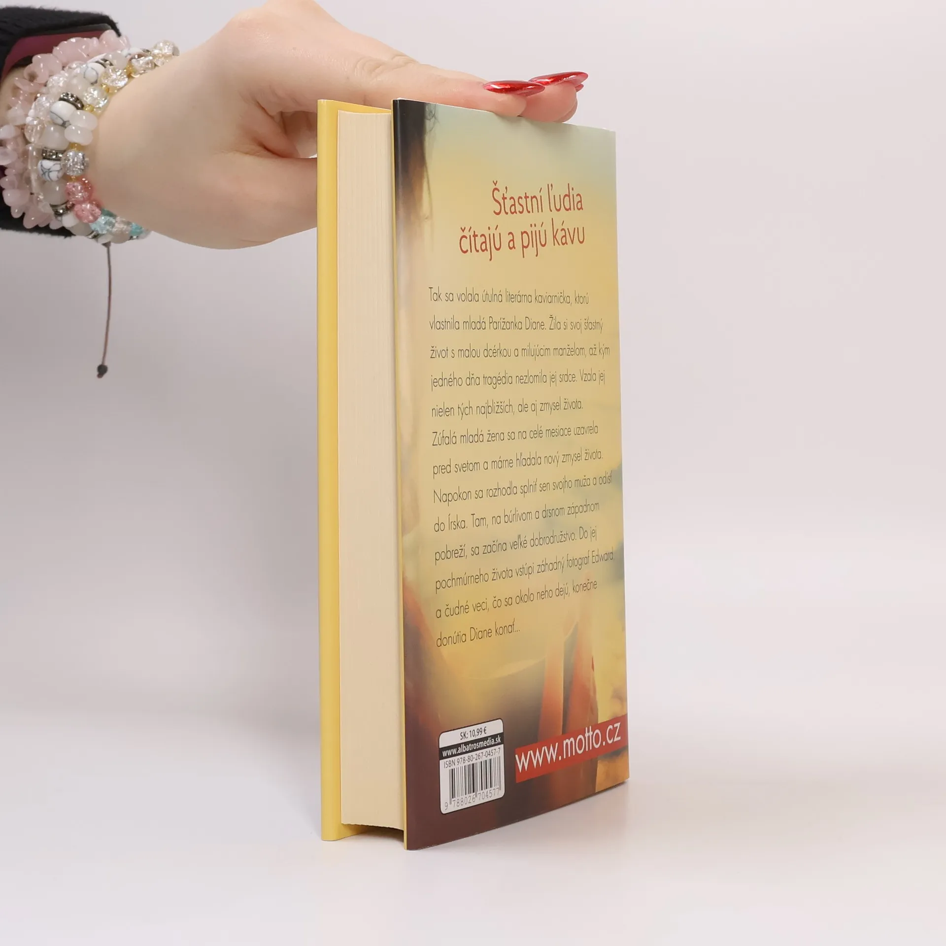 Dá sa zlomené srdce vyliečiť? Autorka tohto bestsellera Agnes Martin-Lugand vás zavedie do drsného, no čarokrásneho Írska, kde sa odohráva príbeh prirovnávaný k obľúbenému filmu Pod toskánskym nebom. Šťastní ľudia čítajú a pijú kávu. Tak sa volala útulná literárna kaviarnička, ktorú vlastnila mladá Parížanka Diane. Žila si svoj šťastný život s malou dcérkou a milujúcim manželom, až kým jedného dňa tragédia nezlomila jej srdce. Vzala jej nielen tých najbližších, ale aj zmysel života. Zúfalá mladá žena sa na celé mesiace uzavrela pred svetom a márne hľadala nový zmysel života. Napokon sa rozhodla splniť sen svojho muža a odísť do Írska. Tam, na búrlivom a drsnom západnom pobreží, sa začína veľké dobrodružstvo. Do jej pochmúrneho života vstúpi záhadný fotograf Edward, a čudné veci, čo sa okolo neho dejú, konečne donútia Diane konať... Filmové práva na knihu získala spoločnosť TWC a chystá sa filmová verzia tohto bestsellera.