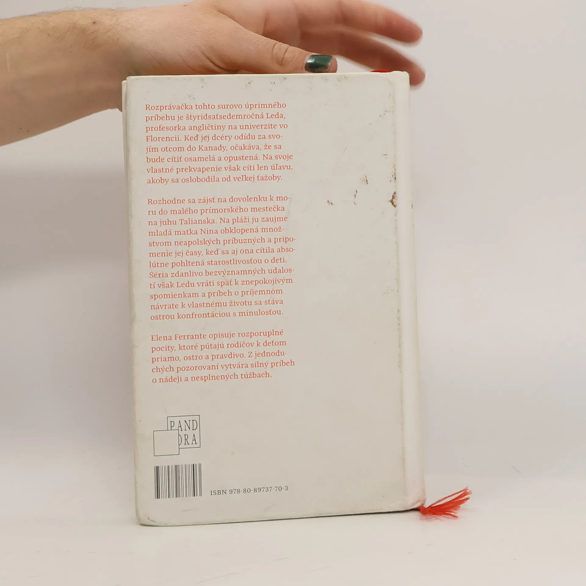 Rozprávačka tohto surovo úprimného príbehu je štyridsaťsedemročná Leda, profesorka angličtiny na univerzite vo Florencii. Keď jej dcéry odídu za svojím otcom do Kanady, očakáva, že sa bude cítiť osamelá a opustená. Na svoje vlastné prekvapenie však cíti len úľavu, akoby sa oslobodila od veľkej ťažoby. Rozhodne sa zájsť na dovolenku k moru do malého prímorského mestečka na juhu Talianska. Na pláži ju zaujme mladá matka Nina obklopená množstvom neapolských príbuzných a pripomenie jej časy, keď sa aj ona cítila absolútne pohltená starostlivosťou o deti. Séria zdanlivo bezvýznamných udalostí však Ledu vráti späť k znepokojivým spomienkam a príbeh o príjemnom návrate k vlastnému životu sa stáva ostrou konfrontáciou s minulosťou. Elena Ferrante opisuje rozporuplné pocity, ktoré pútajú rodičov k deťom priamo, ostro a pravdivo. Z jednoduchých pozorovaní vytvára silný príbeh o nádeji a nesplnených túžbach.