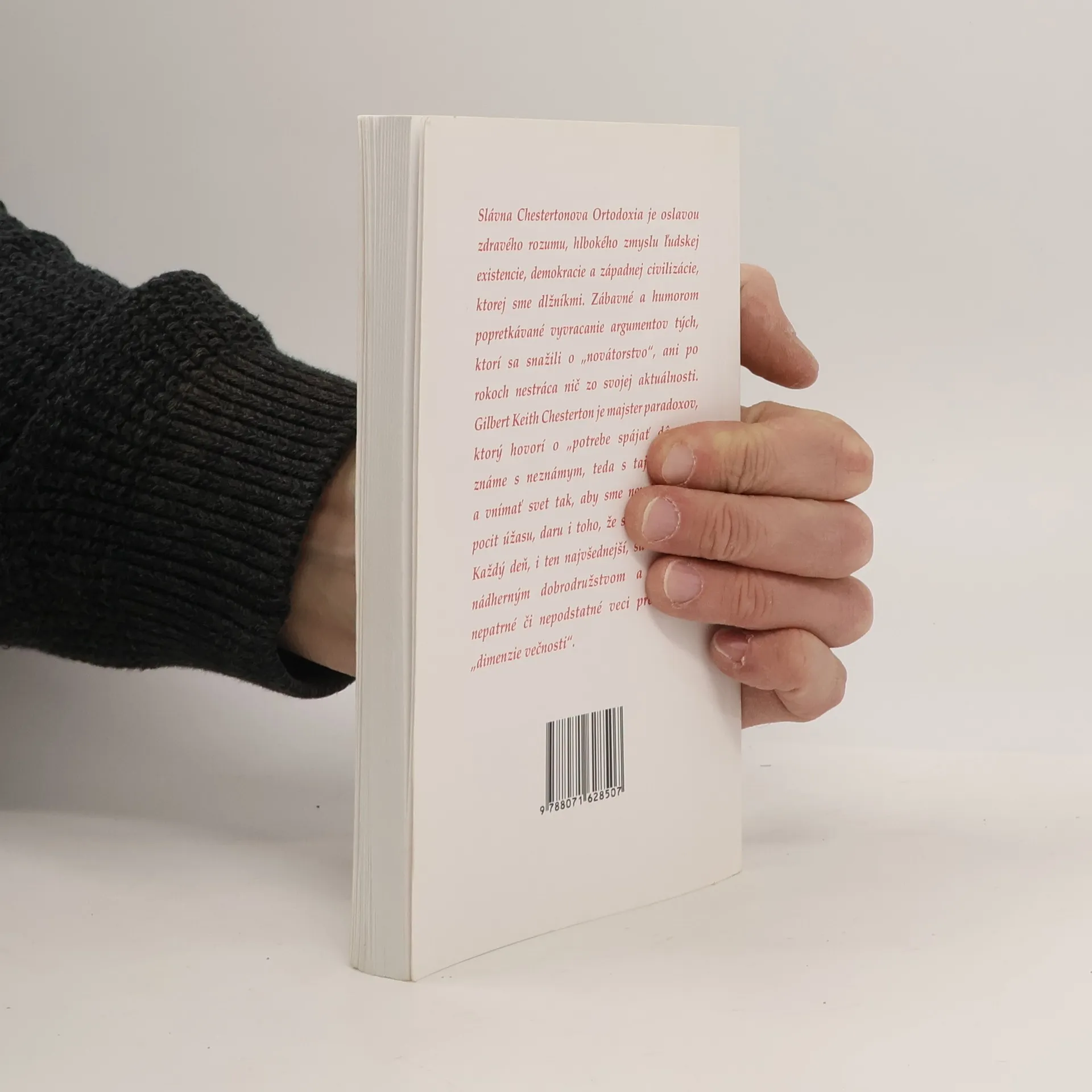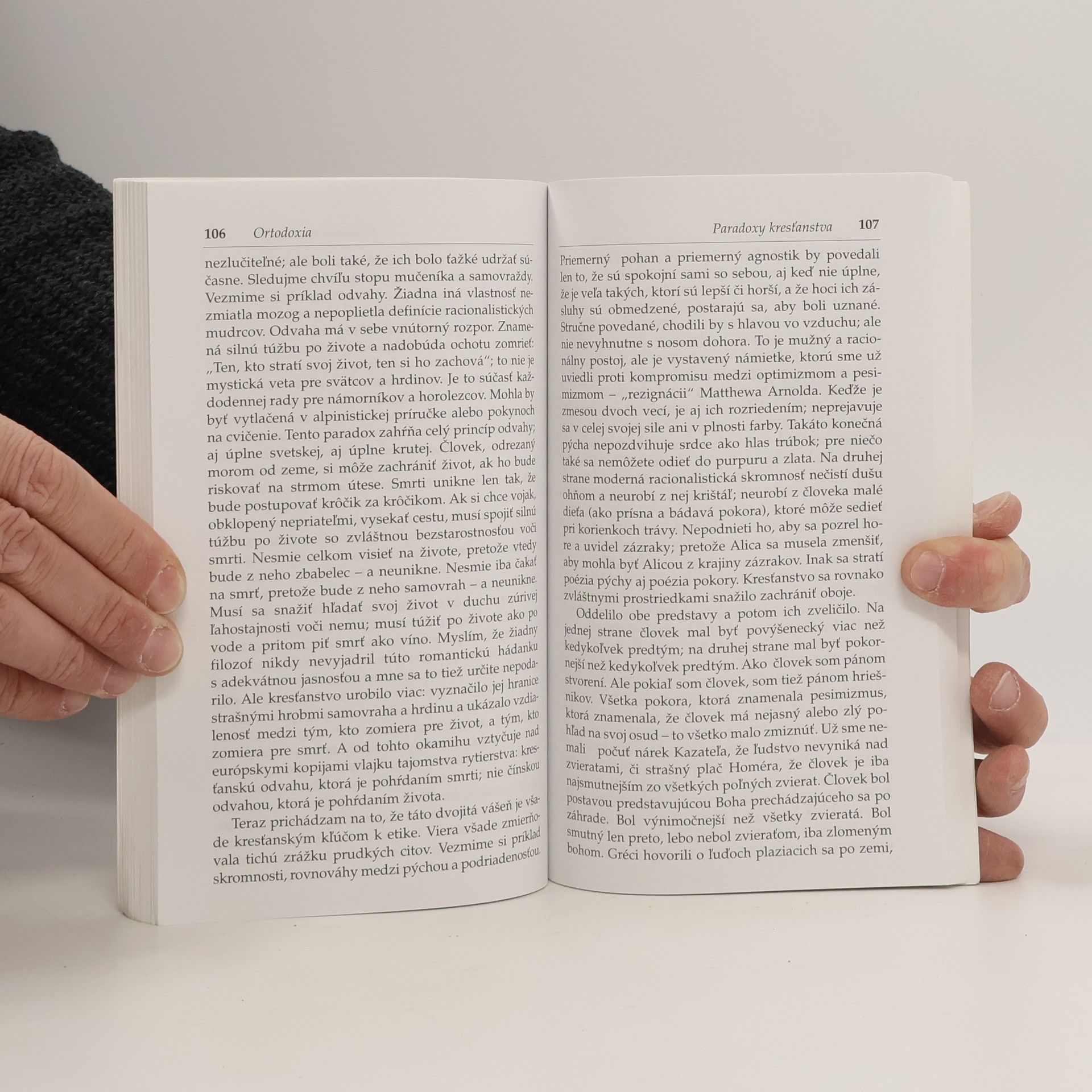 Slávna Chestertonova Ortodoxia je oslavou zdravého rozumu, hlbokého zmyslu ľudskej existencie, demokracie a západnej civilizácie, ktorej sme dlžníkmi. Zábavné a humorom popretkávané vyvracanie argumentov tých, ktorí sa snažili o „novátorstvo“, ani po rokoch nestráca nič zo svojej aktuálnosti. Gilbert Keith Chesterton je majster paradoxov, ktorý hovorí o „potrebe spájať dôverne známe s neznámym, teda s tajomstvom, a vnímať svet tak, aby sme neustále mali pocit úžasu, daru i toho, že sme tu vítaní“. Každý deň, i ten najvšednejší, sa tak stane nádherným dobrodružstvom a zdanlivo nepatrné či nepodstatné veci prerastú do „dimenzie večnosti“. Vydanie prvé