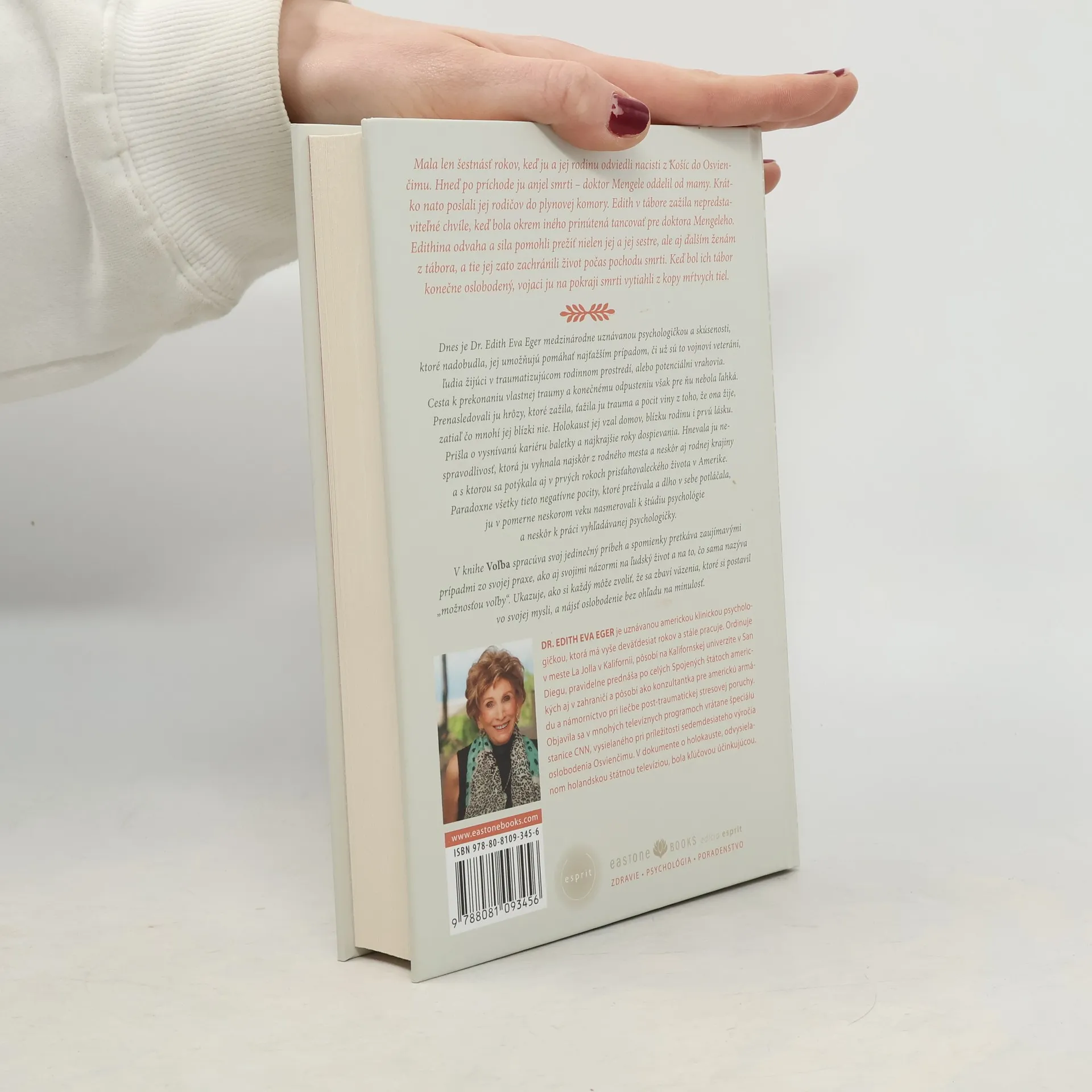 Mala len šestnásť rokov, keď ju a jej rodinu odviedli nacisti z Košíc do Osvienčimu. Hneď po príchode ju doktor Mengele oddelil od mamy a jej rodičia zomreli v plynovej komore. Edith v tábore zažila nepredstaviteľné chvíle, no jej odvaha a sila pomohli prežiť nielen jej a jej sestre, ale aj ďalším ženám z tábora. Dnes je Dr. Edith Eva Eger medzinárodne uznávanou psychologičkou a skúsenosti, ktoré nadobudla, jej umožňujú pomáhať najťažším prípadom, či už sú to vojnoví veteráni, ľudia žijúci v traumatizujúcom rodinnom prostredí, alebo potenciálni vrahovia. V knihe Voľba spracúva svoj jedinečný príbeh o prežití holokaustu a úteku do Ameriky. Spomienky pretkáva zaujímavými prípadmi zo svojej praxe, svojimi názormi na ľudský život a na to, čo sama nazýva "možnosťou voľby". Ukazuje, ako si každý môže zvoliť, že sa zbaví väzenia, ktoré si postavil vo svojej mysli, a nájsť oslobodenie bez ohľadu na minulosť.