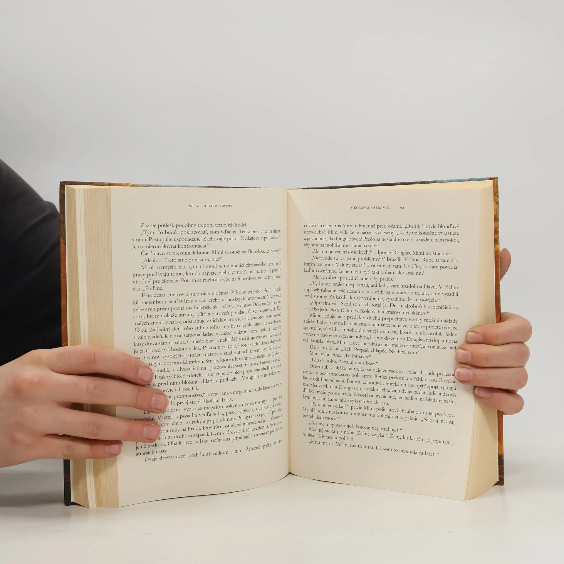 V korunách stromov je dielo plné horlivého aktivizmu a protestu, v ktorom sa ale zároveň pred čitateľom neuveriteľným spôsobom objavuje príroda – a kniha je teda aj ódou na ňu. Dvanásty román Richarda Powersa sa pred nami od koreňov ku korune a potom späť odvíja ako sústredené kruhy navzájom poprepájaných príbehov. Tie siahajú od New Yorku v období pred vojnou Juhu proti Severu až po boje o drevo na severozápade Spojených štátov koncom 20. storočia a ďalej. Existuje totiž svet, ktorý sa odvíja paralelne s tým naším – tento svet je nesmierny, pomalý, navzájom poprepájaný, bohatý, neuveriteľne tvorivý a našimi očami takmer neviditeľný. Prichádza príbeh o niekoľkých ľuďoch, ktorí sa tento svet naučia vidieť, a ktorí sú vtiahnutí do prebiehajúcej katastrofy. „Dômyselne vystavaný príbeh, ktorý sa vetví a týči ako stromy, čo sa nachádzajú v jeho jadre. Ich výnimočnosť a vzájomná prepojenosť pritom odráža ľudí, ktorí medzi nimi žijú,“ zhodnotila komisia, ktorá románu udelila Pulitzerovu cenu za beletriu.