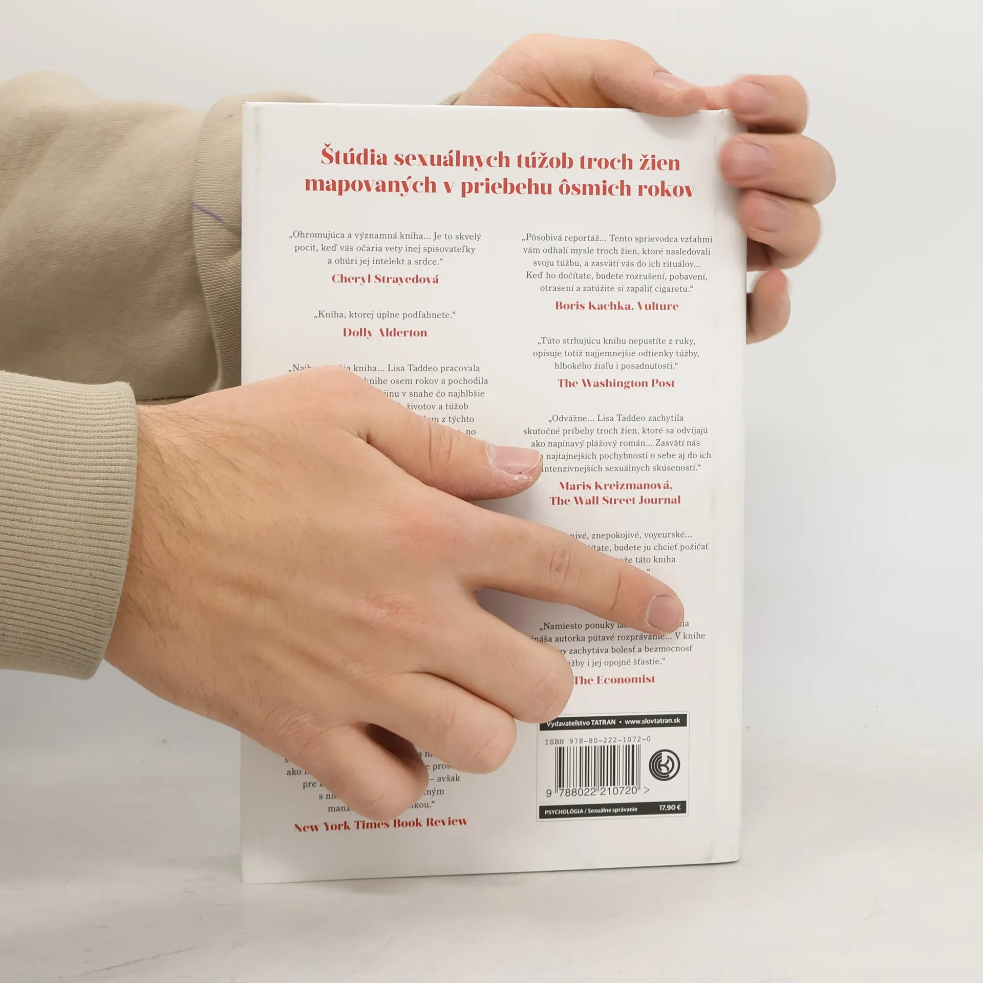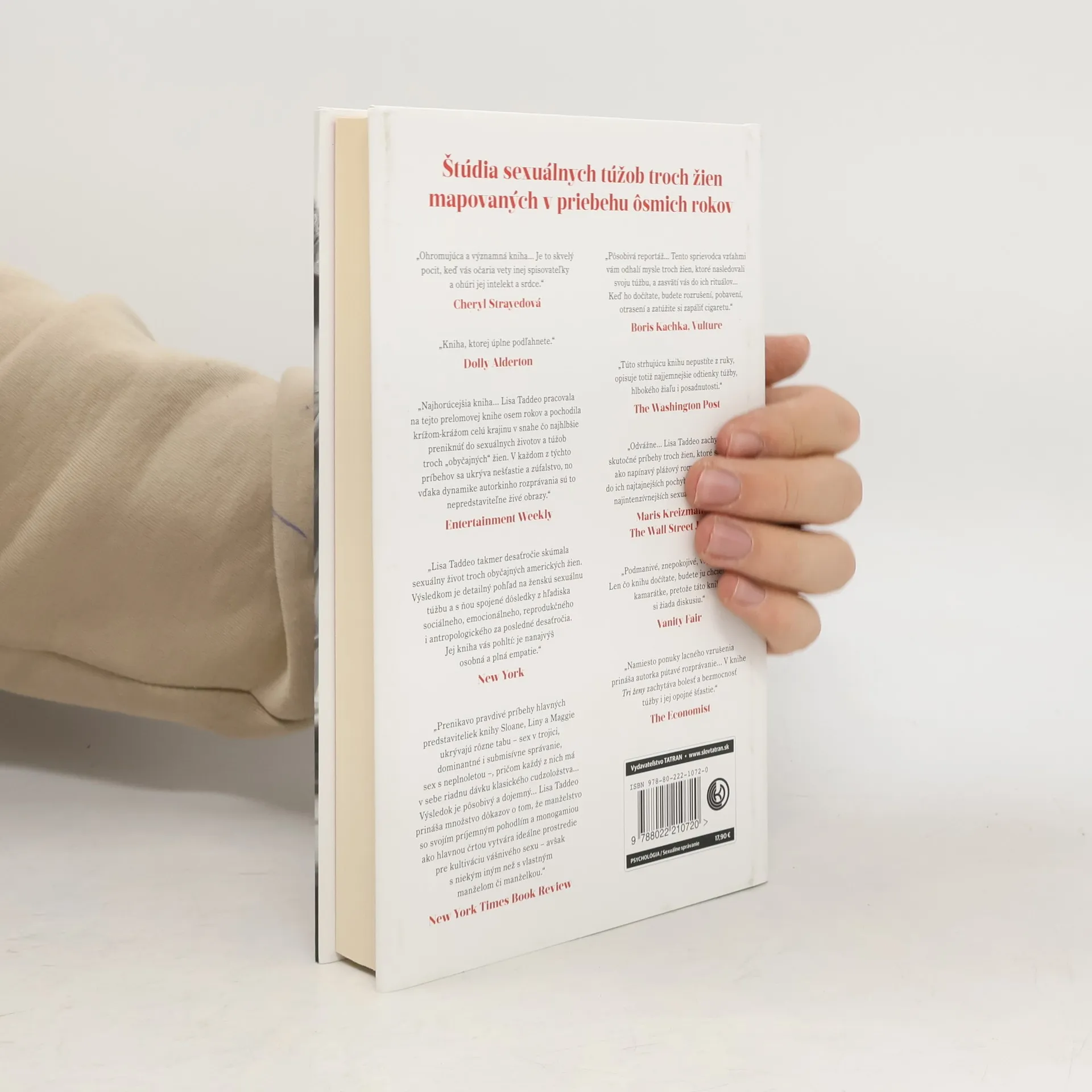 Prenikavý pohľad do tajov ženskej sexuality. Túžba nás vzrušuje aj mučí, ovláda naše myšlienky a ničí životy. Napriek tomu o nej nehovoríme. Americká novinárka Lisa Taddeo strávila osem rokov skúmaním duší obyčajných žien z rôznych regiónov. Výsledkom je dielo, ktoré zachytáva najvernejší portrét ženskej túžby a stalo sa jednou z najdiskutovanejších kníh posledného roka. Na predmestí Indiany žije Lina, žena v domácnosti, ktorej manželstvo po desiatich rokoch stratilo vášeň. Cez sociálne siete sa skontaktuje s bývalým priateľom, čo ju pohltí. V Severnej Dakote sa stretávame so sedemnásťročnou Maggie, ktorá sa zapletie s ženatým učiteľom. Ich utajený vzťah vyústi do sklamania, keď sa učiteľ s ňou rozíde na jej osemnáste narodeniny. Následne sa snaží vyrovnať s následkami a odhaľuje pravdu, čo spôsobí rozruch v jej komunite. Na severovýchode krajiny spoznáme Sloane, úspešnú majiteľku reštaurácie, ktorej manžel sa rád pozerá na jej sexuálne stretnutia s inými. Ich vzťah sa dostáva do krízy, keď sa objaví nový milenec, čo Sloane núti prehodnotiť dynamiku ich vzťahu. Dielo, ktoré autorka sledovala takmer desaťročie, predstavuje prelomovú štúdiu erotickej túžby v súčasnej Amerike, odhaľujúc jej komplexnosť a krehkosť. S nesmiernou empatiou predstavuje tri nezabudnuteľné ženy a ich skúsenosti, ktoré dokazujú, že problémy nenaplnenej sexuálnej túžby sú spoločné všetkým ženám.