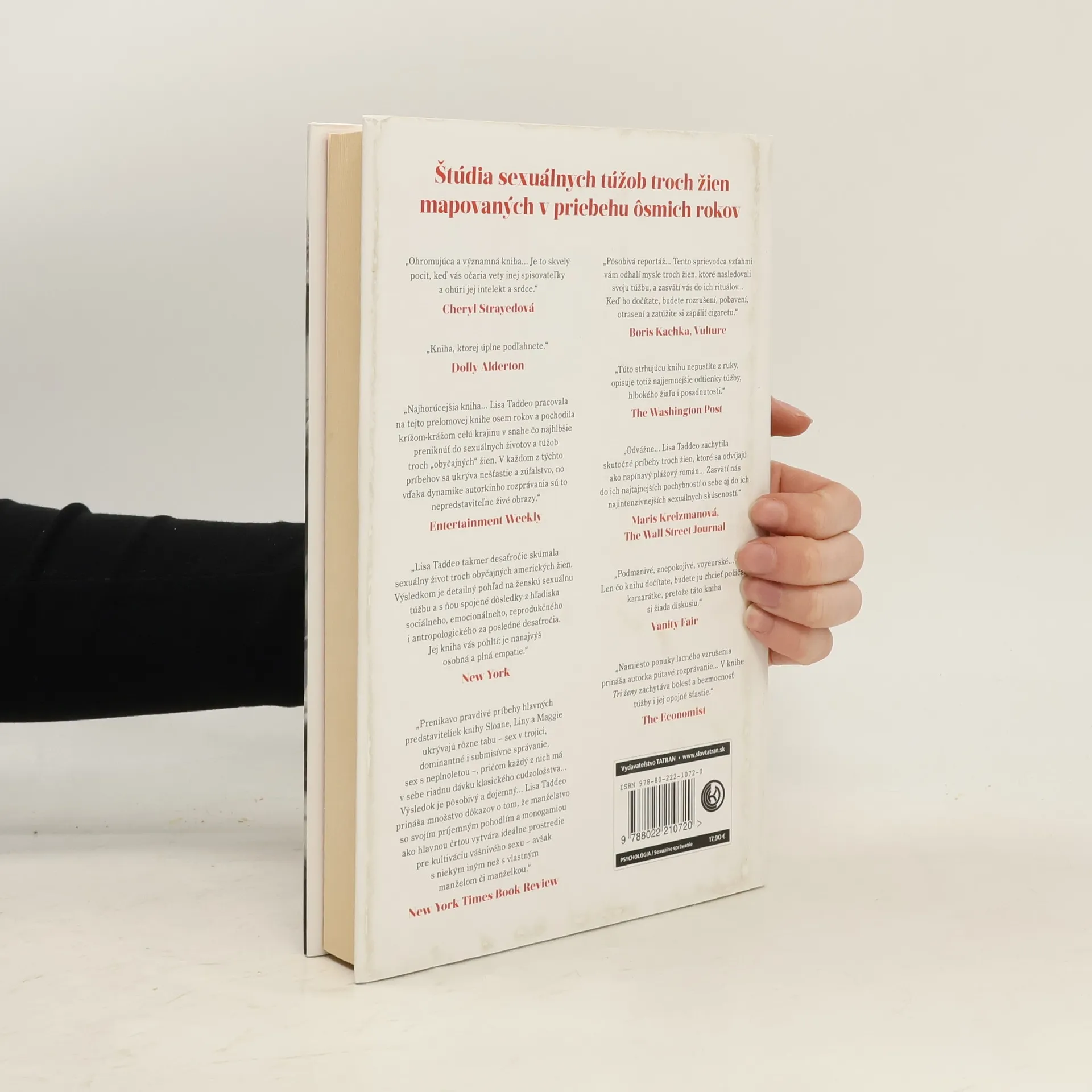 Prenikavý pohľad do tajov ženskej sexuality. Túžba nás vzrušuje aj mučí, ovláda naše myšlienky a ničí životy. Napriek tomu o nej nehovoríme. Americká novinárka Lisa Taddeo strávila osem rokov skúmaním duší obyčajných žien z rôznych regiónov. Výsledkom je dielo, ktoré zachytáva najvernejší portrét ženskej túžby a stalo sa jednou z najdiskutovanejších kníh posledného roka. Na predmestí Indiany žije Lina, žena v domácnosti, ktorej manželstvo po desiatich rokoch stratilo vášeň. Cez sociálne siete sa skontaktuje s bývalým priateľom, čo ju pohltí. V Severnej Dakote sa stretávame so sedemnásťročnou Maggie, ktorá sa zapletie s ženatým učiteľom. Ich utajený vzťah vyústi do sklamania, keď sa učiteľ s ňou rozíde na jej osemnáste narodeniny. Následne sa snaží vyrovnať s následkami a odhaľuje pravdu, čo spôsobí rozruch v jej komunite. Na severovýchode krajiny spoznáme Sloane, úspešnú majiteľku reštaurácie, ktorej manžel sa rád pozerá na jej sexuálne stretnutia s inými. Ich vzťah sa dostáva do krízy, keď sa objaví nový milenec, čo Sloane núti prehodnotiť dynamiku ich vzťahu. Dielo, ktoré autorka sledovala takmer desaťročie, predstavuje prelomovú štúdiu erotickej túžby v súčasnej Amerike, odhaľujúc jej komplexnosť a krehkosť. S nesmiernou empatiou predstavuje tri nezabudnuteľné ženy a ich skúsenosti, ktoré dokazujú, že problémy nenaplnenej sexuálnej túžby sú spoločné všetkým ženám.