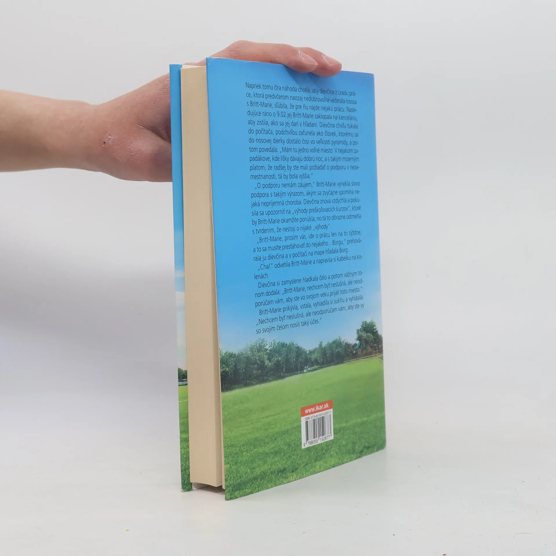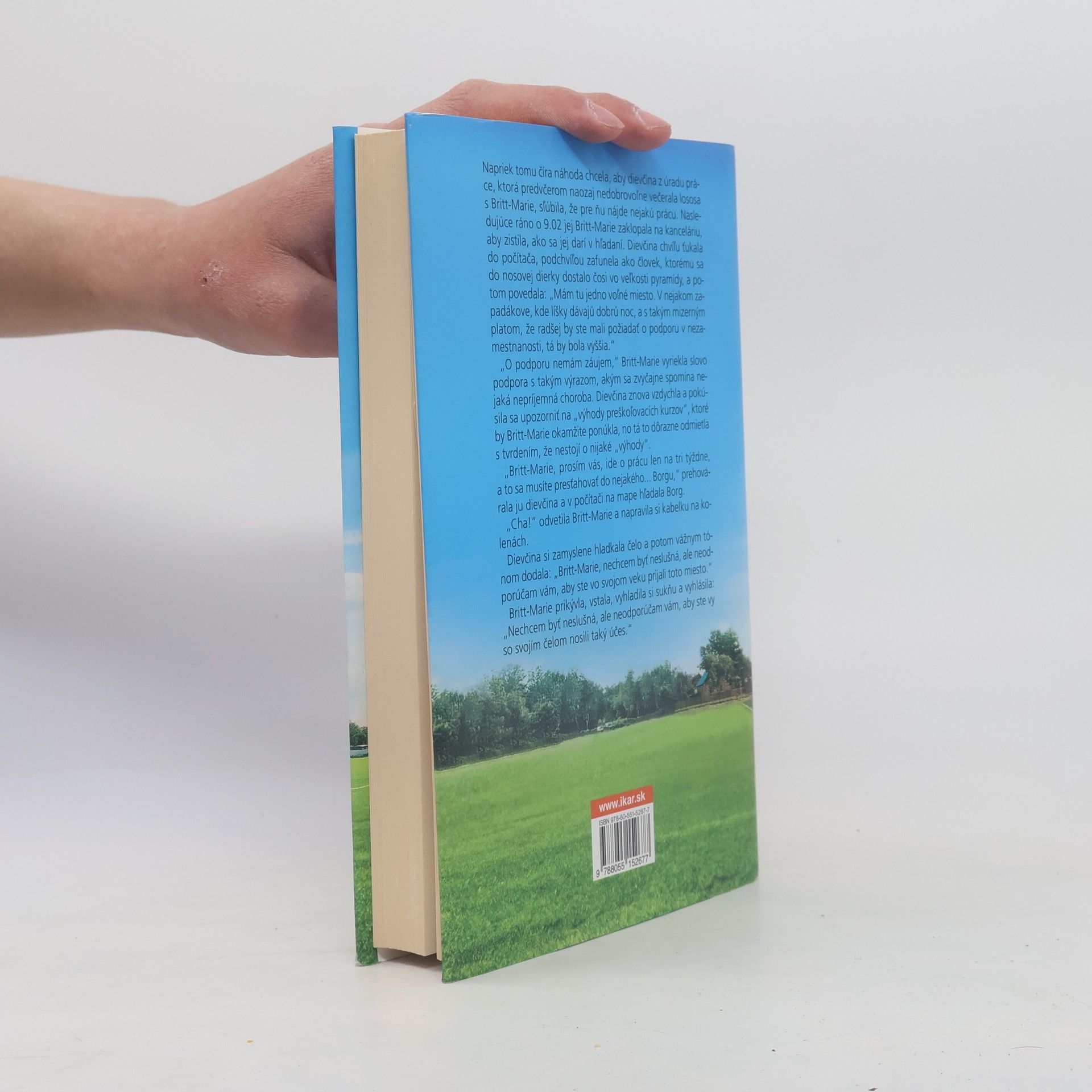 Šesťdesiattriročná Britt-Marie naozaj nie je pasívne agresívna osoba. To len špina, neporiadok, škrabance a nesprávne uložený príbor ju nútia kričať, aj to iba hlboko vo svojom vnútri. Práve teraz odchodom z domu ukončila svoje štyridsaťročné manželstvo a život ženy v domácnosti. Jediná práca, ktorú sa jej podarilo zohnať, ju zavedie do Borgu. Je to zapadnutá obec postihnutá finančnou krízou, v ktorej skrachovalo všetko okrem pizzerie páchnucej pivom. Britt-Marie odjakživa nenávidí futbal, ale Borgu nezostalo okrem neho nič. To, prirodzene, nepredznačuje ideálny začiatok nejakej vrúcnej obojstrannej náklonnosti. Lenže tunajšie mládežnícke futbalové mužstvo tak zúfalo potrebuje trénera, že je ochotné ponúknuť príležitosť komukoľvek. Športovcov z Borgu nemôže odradiť ani taká maličkosť, že Britt-Marie o tento post vôbec nestojí. No a keď ešte dostane pozvanie na rande od miestneho policajta a v soláriu si zlomí ruku, niet pre ňu cesty späť. Román Tu žila Britt-Marie je príbehom o láske a vyznaní. O žene, ktorá celý život čakala na jeho skutočný začiatok, o mnohých nenápadných obciach pri hradskej, v ktorých zlyháva všetko – až na futbal a pizzeriu, lebo tie človeka nezradia.