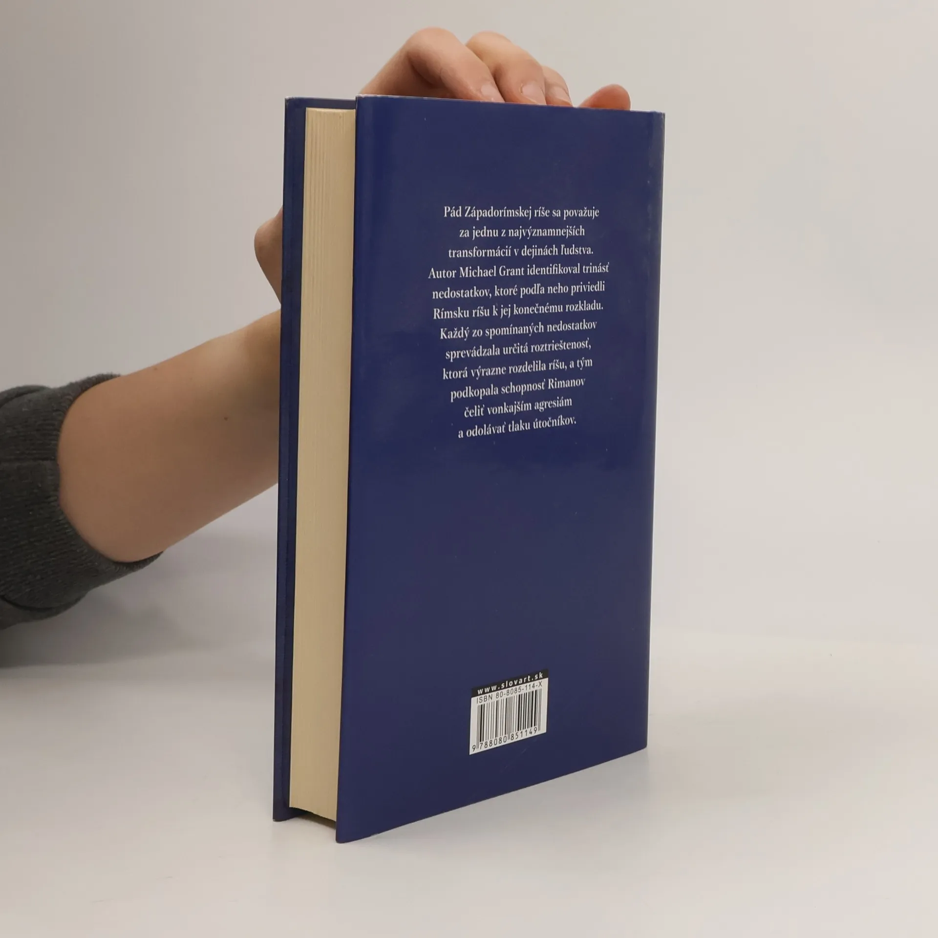 Pád Západorímskej ríše bol jednou z najvýznamnejších transformácií v celých dejinách ľudstva. Michael Grant identifikoval trinásť nedostatkov, ktoré pokladá za rozhodujúce pre zánik impéria. Tieto trhliny v spoločnosti antického Ríma rozdelili národ a zničili jeho schopnosť odolávať nepriateľským inváziám. V knihe skúma minulosť zrozumiteľne a do hĺbky, vnášajúc svetlo do tejto nekonečne fascinujúcej témy. Michael Grant je aj autorom knihy Dvanásť cisárov.