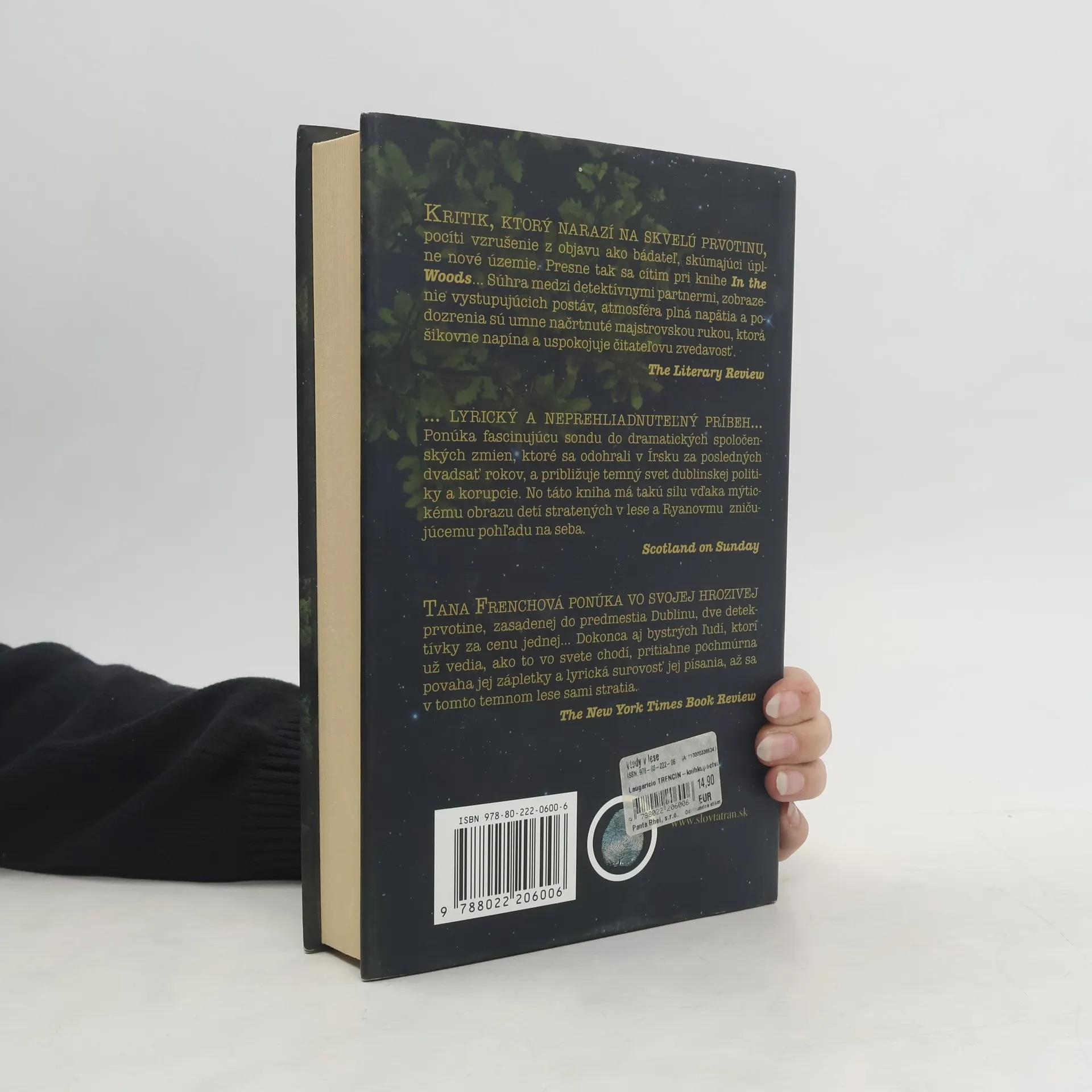 Vtedy v lese je fascinujúca detektívka – plná akcie, psychologických zápletiek a postáv takých skutočných, že Vám pripadajú ako priatelia. Je tu všetko: tragickí milenci, prípad zmiznutých detí, psychopati, mylné dedukcie, trúfalý, zábavný a nespoľahlivý rozprávač. Príbeh vás zdrapne za golier a s krikom vtiahne do lesa. Na oltári z doby bronzovej, objavenom na posvätnom mieste v Knocknaree, sa nájde mŕtve dieťa. Je to talentovaná balerína, dcéra muža, ktorý vedie kampaň proti diaľnici, naplánovanej cez vzácne archeologické nálezisko. Policajt – rozprávač prežil iné nevyriešené zmiznutie v lete roku 1984, čo lesu dodáva desivo klamlivé čaro. K tomu pristupujú politické ťahanice, posvätná hrdosť detektívnych partnerov, rodina, v ktorej niečo fakt smrdí, čudná partia archeológov a príšerný, strašidelný les.