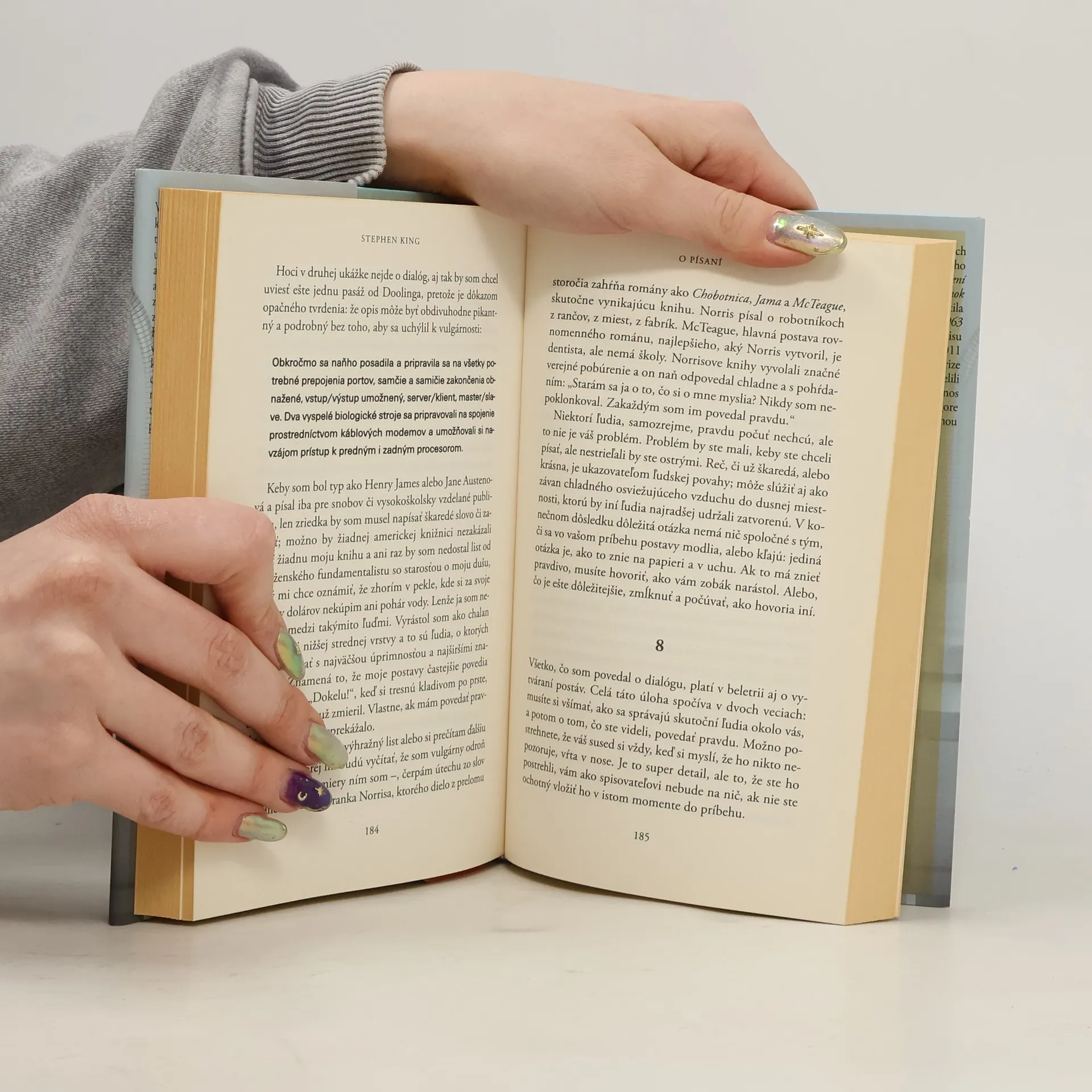 Vedeli ste, že Stephen King si na písanie niektorých svojich textov ani nepamätá, pretože trpel závislosťou od drog a alkoholu? Že viackrát unikol smrti a zachránila ho len láska rodiny – a láska k príbehom? Že jeden z najúspešnejších a najbohatších spisovateľov na svete pochádza z chudobných pomerov a nikdy nič nedostal zadarmo? Kniha O písaní je napriek svojmu názvu predovšetkým o živote. Prečítate si, ako sa z chlapca, ktorý musel vyrásť bez otca a dlho počítal každý cent, stal milionár. O jeho bezhraničnej oddanosti knihám a ľuďom. A možno sa aj inšpirujete, aby ste to, čo robíte, a nemusí to byť práve písanie, robili s väčšou radosťou a vášňou.