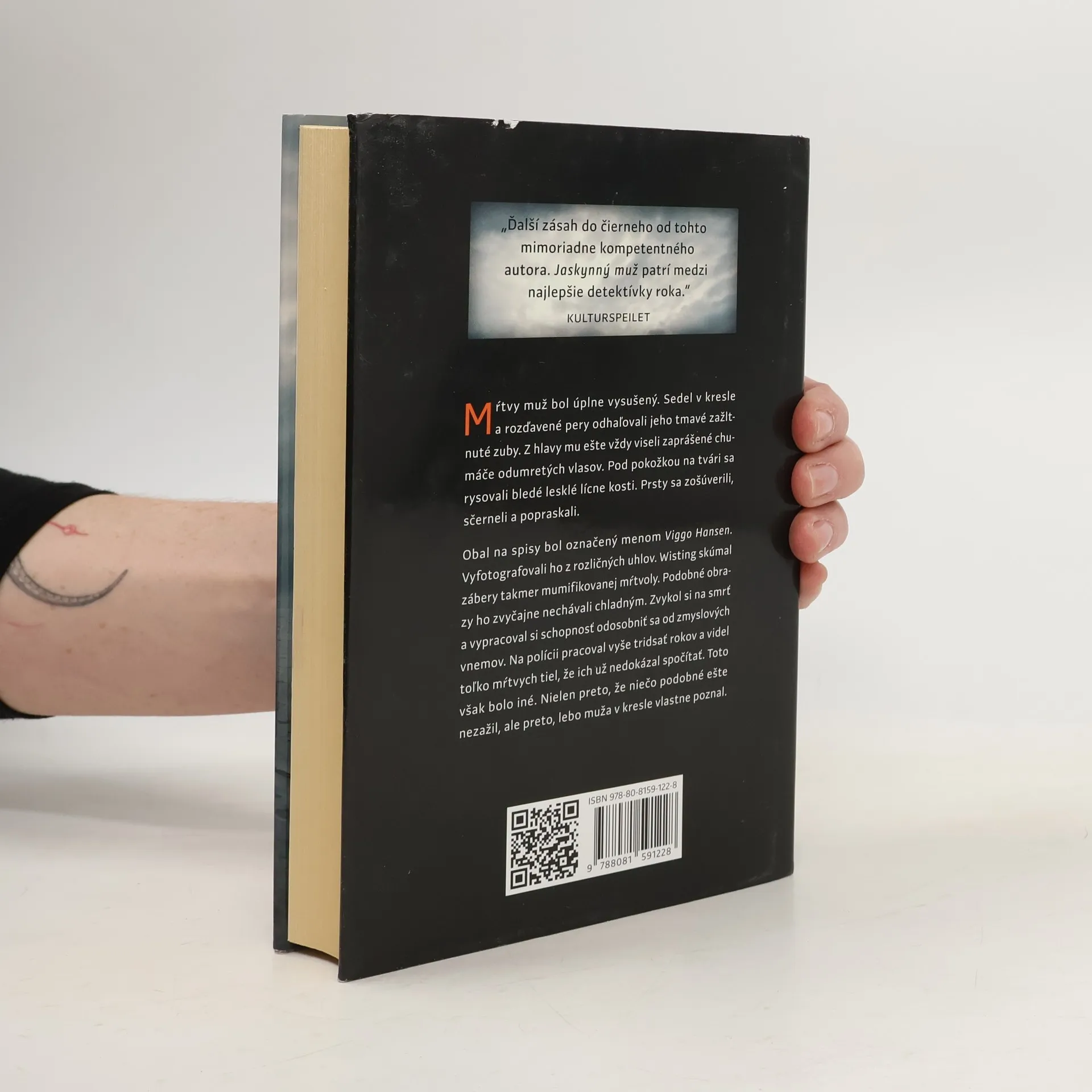 Najnovší detektívny román nórskeho autora začína úmrtím vo Wistingovom bezprostrednom susedstve. Len o tri domy ďalej od inšpektora sedí už štyri mesiace pred blikajúcim televízorom mŕtvy muž. Nič nenaznačuje tomu, že by mala smrť kriminálne pozadie. Viggo Hansen bol neviditeľný človek, jeho úmrtie sa nemá prečo ocitnúť na titulných stránkach novín, no niečo na jeho skone nedáva pokoj inšpektorovej dcére, novinárke Line. Zamýšľa napísať portrét celkom neznámeho muža, ktorý žije uprostred dnešnej spoločnosti. Púšťa sa do pátrania a súčasne prichádza na policajnú stanicu hlásenie o ďalšom úmrtí. Aj táto obeť nesie všetky známky toho, že je mŕtva už dlhší čas. Nález tela je úvodom jednej z najväčších vyšetrovacích akcií v dejinách nórskej kriminalistiky. Ďalší zásah do čierneho od tohto mimoriadne kompetentného autora. Jaskynný muž patrí medzi najlepšie detektívky roka