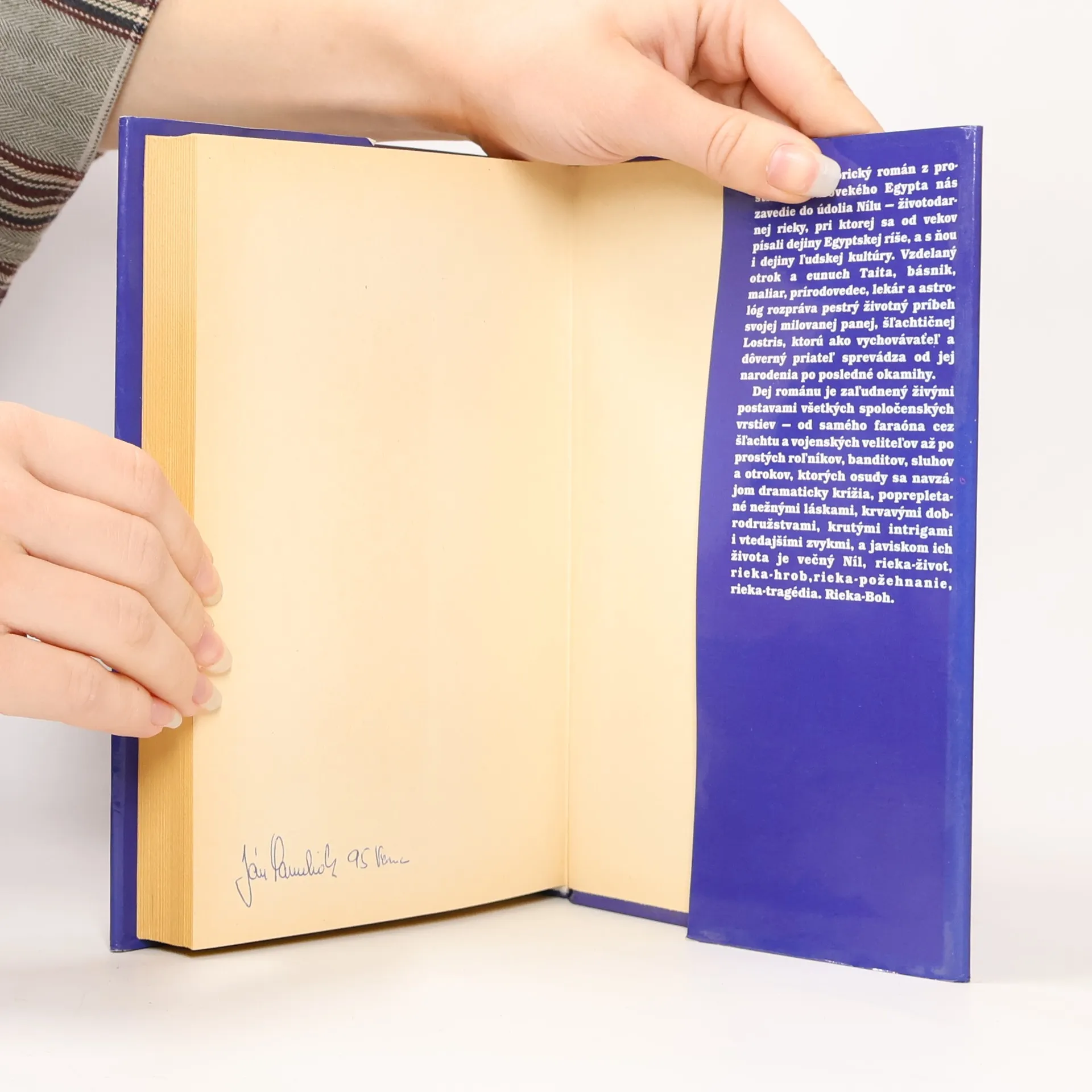 Pútavý historický román z prostredia starovekého Egypta nás zavedie do údolia Nílu — životodarnej rieky, pri ktorej sa od vekov písali dejiny Egyptskej ríše, a s ňou i dejiny ľudskej kultúry. Vzdelaný otrok a eunuch Taita, básnik, maliar, prírodovedec, lekár a astrológ rozpráva pestrý životný príbeh svojej milovanej panej, šľachtičnej Lostris, ktorú ako vychovávateľ a dôverný priateľ sprevádza od jej narodenia po posledné okamihy. Dej románu je zaľudnený živými postavami všetkých spoločenských vrstiev — od samého faraóna cez šľachtu a vojenských veliteľov až po prostých roľníkov, banditov, sluhov a otrokov, ktorých osudy sa navzájom dramaticky krížia, poprepletané nežnými láskami, krvavými dobrodružstvami, krutými intrigami i vtedajšími zvykmi, a javiskom ich života je večný Níl, rieka-život, rieka-hrob, rieka-požehnanie, rieka-tragédia. Rieka-Boh.