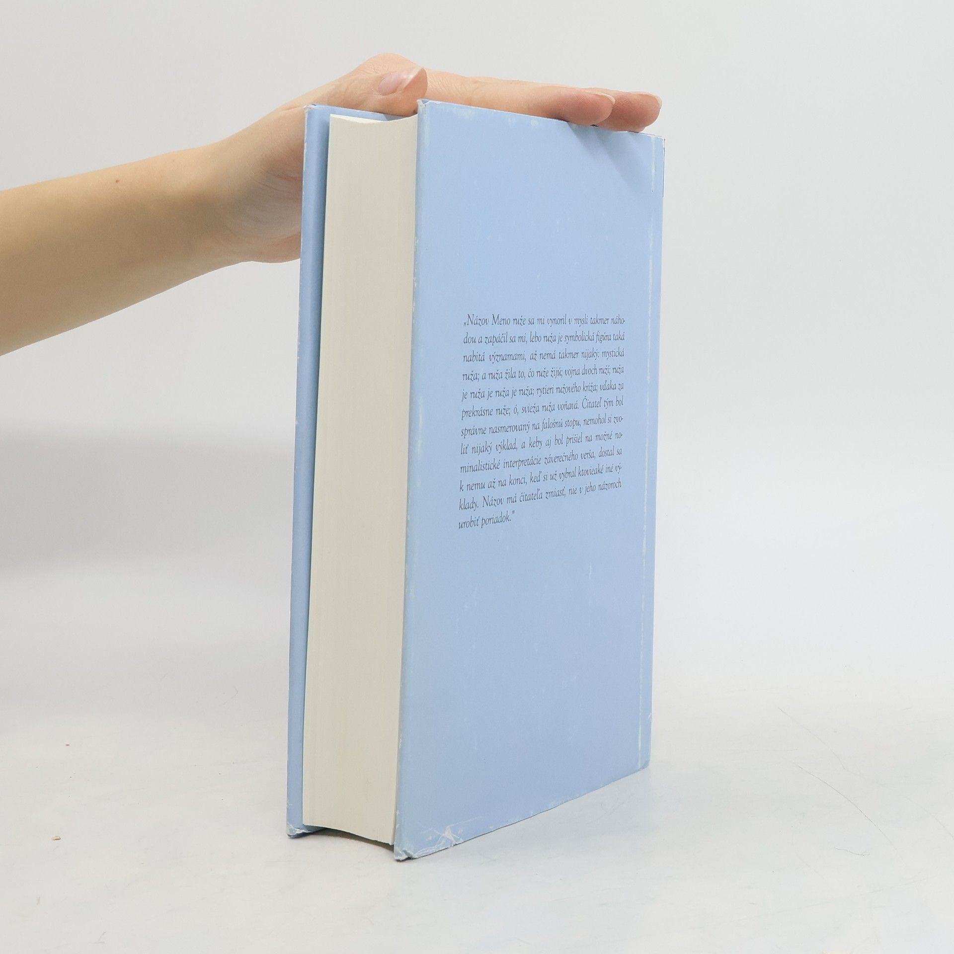 Slávny román vyšiel ako zväzok 1. edície Svetová knižnica SME. Súčasťou vydania sú autorove Poznámky k Menu ruže.