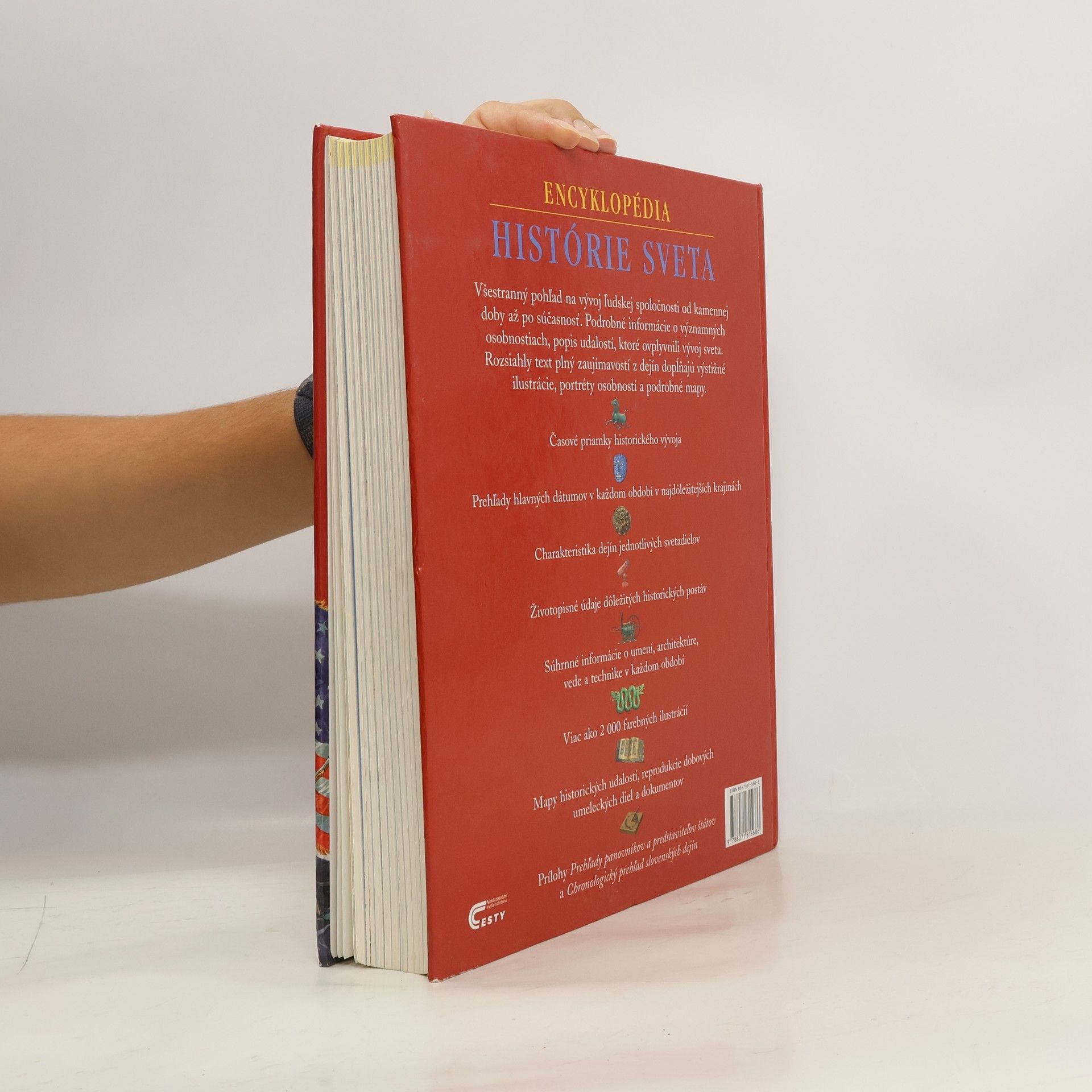 Všestranný pohľad na vývoj ľudskej spoločnosti od kamennej doby až po súčasnosť. Podrobné informácie o významných osobnostiach, popis udalostí, ktoré ovplyvnili vývoj sveta. Rozsiahly text plný zaujímavostí z dejín dopĺňajú výstižné ilustrácie, portréty osobností a podrobné mapy. * Časové priamky historického vývoja * Prehľady hlavných dátumov v každom období v najdôležitejších krajinách * Charakteristika dejín jednotlivých svetadielov * Životopisné údaje dôležitých historických postáv * Súhrnné informácie o umení, architektúre, vede a technike v každom období * Viac ako 2 000 farebných ilustrácií * Mapy historických udalostí, reprodukcie dobových umeleckých diel a dokumentov