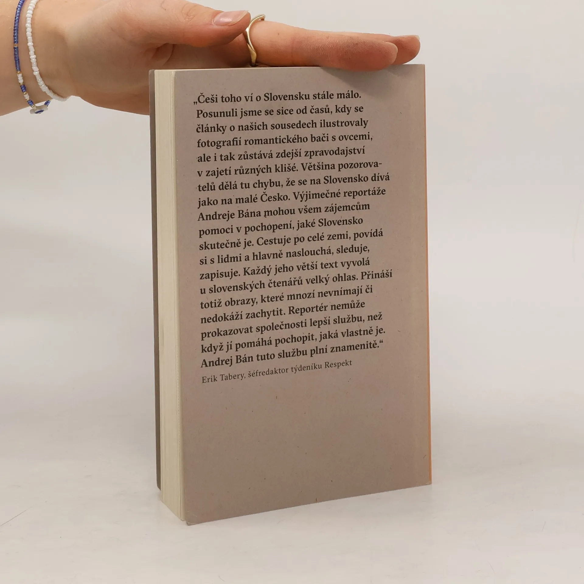 Česko má Mariusze Szczcygła a jeho Gottland. Upřímné svědectví o přítomnosti i minulosti našich slovenských sousedů napsal výjimečný reportér Andrej Bán. Rok 2018 kompletně změnil tvář slovenské společnosti. Vražda novináře Jána Kuciaka a jeho snoubenky Martiny Kušnírové hluboce zasáhla celou společnost a na povrch vyplavila vzájemné kontakty mafie s politickými špičkami. Andrej Bán byl při tom, stejně jako při všech důležitých událostech, které se na Slovensku udály za posledních třicet let. Reportér a fotograf Andrej Bán zná Slovensko jako vlastní dlaň. Třicet let brázdí jeho prašné i asfaltové cesty a při tom poznává lidi a jejich příběhy. V jeho textech je znát pozorné oko fotografa, v jeho fotografiích zas přesný postřeh výborného vyprávěče. Kniha Slon na Zemplíně je intimním svědectvím o zemi i lidech žijících své životy daleko za horizontem všeobecné pozornosti. Je to klikatá cesta z východu na západ, od Čierné nad Tisou po Bratislavu, a taky dlouhá pouť v čase, od Jánošíka, přes Jozefa Tisa, až po italskou mafii ´Ndranghetu a „naše lidi“, kteří si užívají výhod spojených se známostmi na nejvyšších místech. Reportáže z knihy Slon na Zemplíně jsou pestrou freskou příběhů ze země, která nám je nejblíže a známe ji možná ze všech nejméně. Andrej Bán, spoluzakladatel organizace Člověk v tísni za tuto knihu získal prestižní Cenu Nadace Tatra Banky za umění v kategorii literatura.