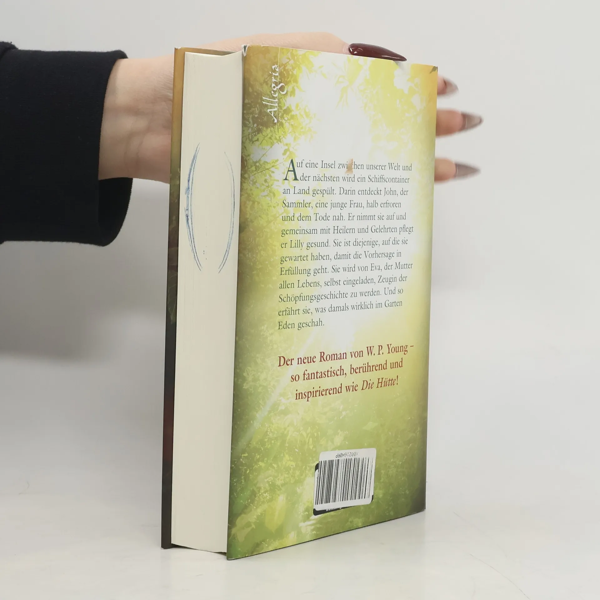 »Die Sprache ist atemberaubend schön und verführt zu einem völlig neuen Blick auf Gott und die Schöpfungsgeschichte.« PUBLISHERS WEEKLY Halb erfroren und dem Tode nahe strandet eine junge Frau auf einer geheimnisvollen Insel. Zu ihrem großen Glück wird sie von Gelehrten und Heilern gefunden, die bald erkennen, dass Lilly zu etwas ganz Besonderem berufen ist. Niemand Geringeres als Eva, die Mutter allen Lebens, lädt sie ein, Zeugin der Schöpfungsgeschichte zu werden und zu erfahren, was wirklich im Garten Eden geschah. Die dramatischen Ereignisse, die zur Vertreibung aus dem Paradies führen, bewegen Lilly zutiefst, und sie versteht, dass Gott sich von den Menschen niemals abgewandt hat. Ihre Aufgabe ist es nun, die Geschichte neu zu erzählen. William Paul Young hat bereits in Die Hütte zentrale spirituelle Fragestellungen neu beleuchtet und ein Millionenpublikum damit begeistert. In seinem neuen Roman zeigt er dem Leser eine ungewöhnliche und faszinierende Interpretation der ältesten Geschichte unserer Welt.