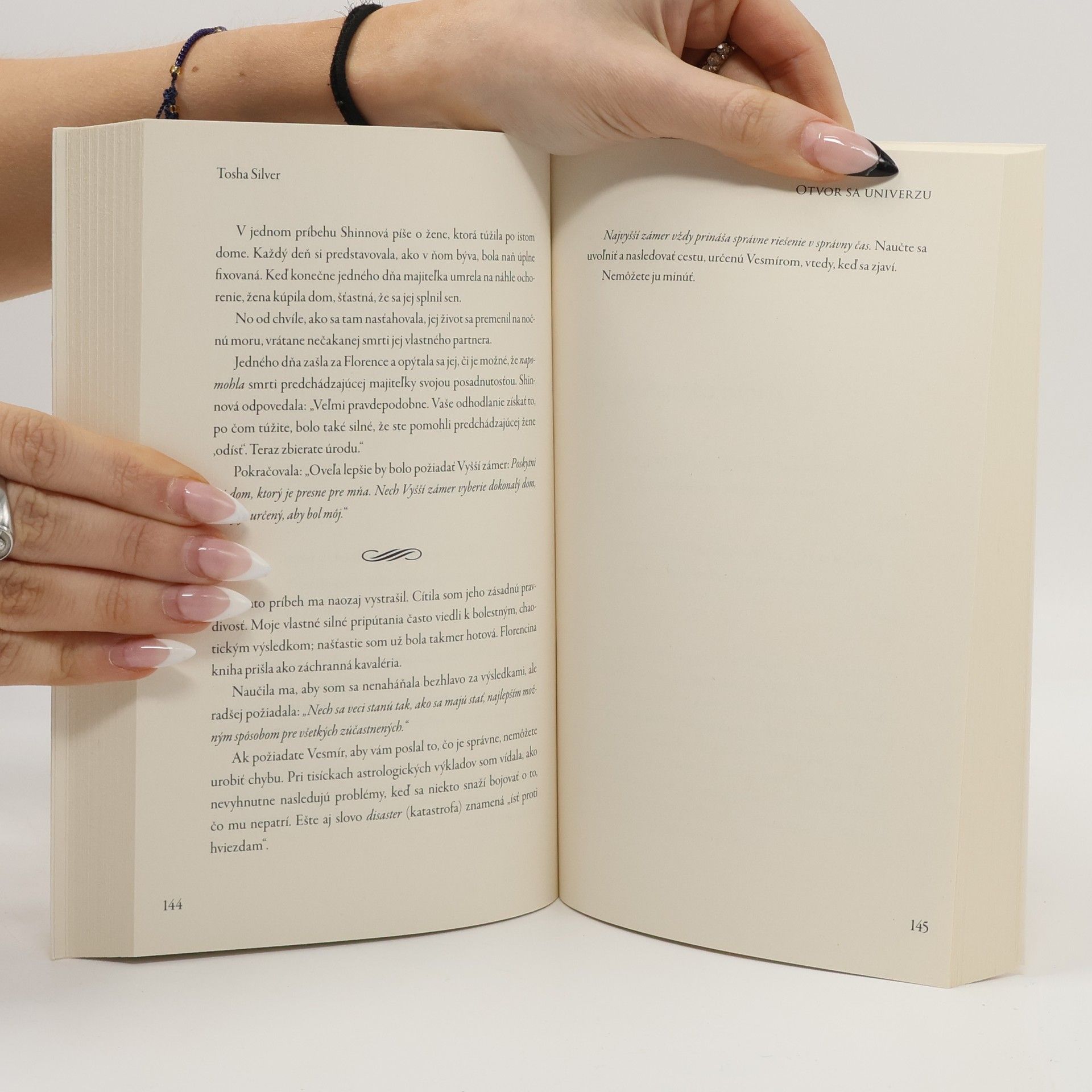 Či si to uvedomujeme alebo nie, všetci v živote dennodenne zažívame dotyk Božej lásky. Tosha Silver má za sebou 25 ročnú astrologickú a poradenskú prax, počas ktorej radila 10 000 ľudí z celého sveta. Vďaka tomu si uvedomila, že takmer všetci z nás majú podobné problémy: „Ako si mám prestať robiť starosti? Ako sa môžem cítiť v bezpečí? Prečo sa cítim tak osamelo?“ a často tiež „Kto naozaj som?“. Pre tých, ktorí sú vášnivo duchovní a predsa úsmevne skeptickí, napísala Otvor sa Univerzu. Táto veselá kniha plná múdrosti a osviežujúcich pohľadov na vec v čitateľovi prebudí uvoľnenú a dôverčivú otvorenosť, aby mohol objaviť odpovede na veľké životné otázky, ktoré sa spontánne vynárajú.