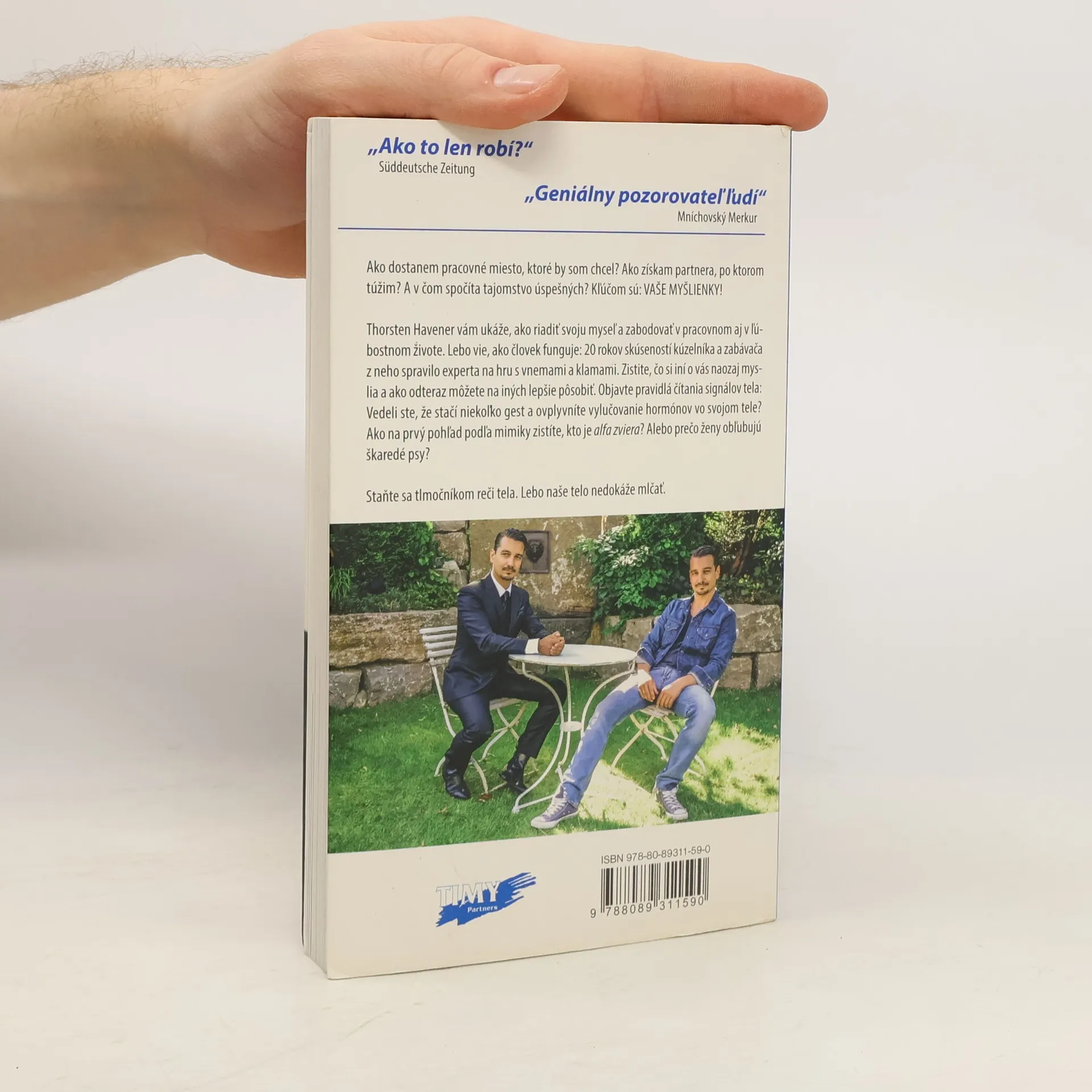 Bestseller, ktorý vás naučí čítať a ovplyvňovať reč tela! Thorsten Havener, autor, ktorého si tisíce Slovákov zamilovali vďaka jeho bestsellerom ako Viem, čo si myslíš (Tajomstvo čítania myšlienok), Mysli si, čo chceš alebo Nemyslite na modrého slona je späť a tentoraz sa podujal naučiť svojich čitateľov niečo zdanlivo bezvýznamné, čo však ovplyvňuje naše každodenné rozhodovanie – reč tela. Ak sa nevieme správne vyjadrovať a druhých nedokážeme správne pochopiť, nepomôžu nám nijaké odborné znalosti. Reč tela a schopnosť vcítiť sa do druhého sú preto nerozlučne spojené. Pomáhajú nám zlepšiť vlastný život aj životy ľudí okolo nás. Aj preto je dôležité naučiť sa signály reči tela iných správne interpretovať a vedieť ako ovplyvňovať tie naše, aby sme boli lepšie pochopení. A práve to vás naučí bestseller Bez slov.