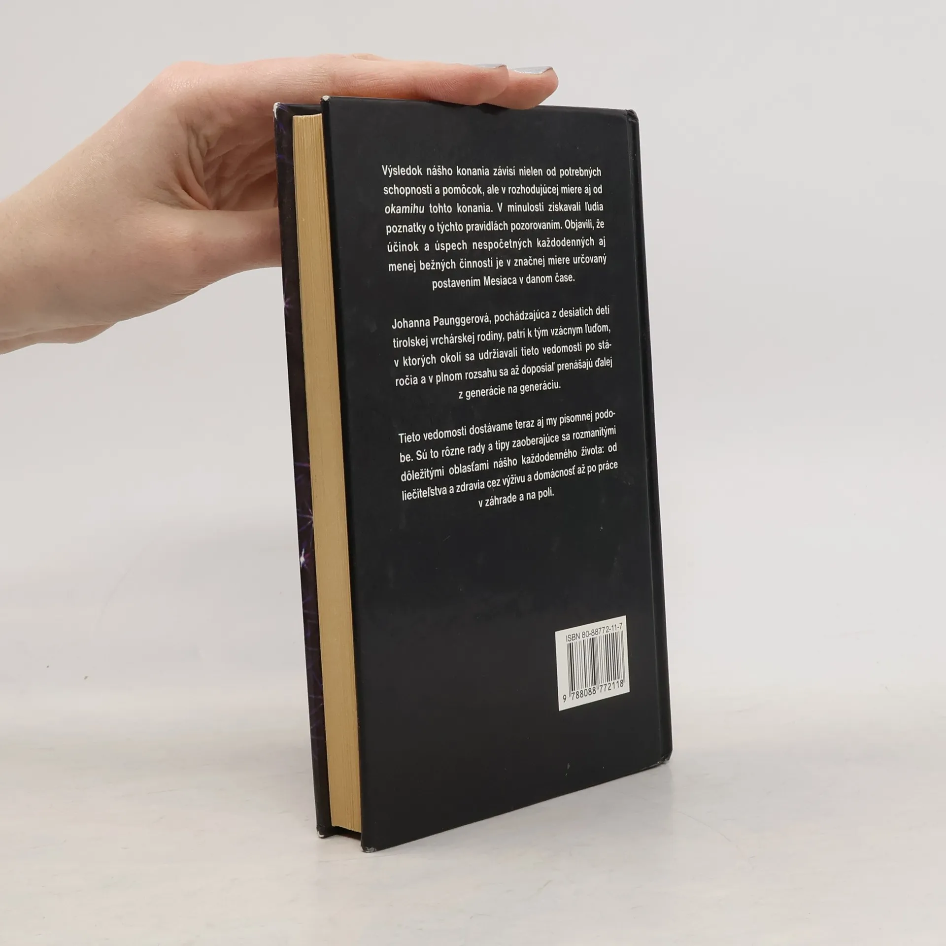 V minulosti ľudia zistili, že účinok a úspech nespočetných každodenných aj menej bežných činností je v značnej miere určovaný postavením Mesiaca v danom čase. Autorka patrí k tým vzácnym ľuďom, v ktorých okolí sa tieto vedomosti udrživali a v plnom rozsahu sa prenášajú dodnes. Táto kniha ich obsahuje. Kniha ponúka čitateľovi generáciami overené poznatky o tajuplnej sile splnu a jej vplyve na náš život. Dozvieme sa tiež, že deň splnu je najhorším dňom pre akúkoľvek operáciu, i práce v domácnosti idú ľahšie až po splne…
