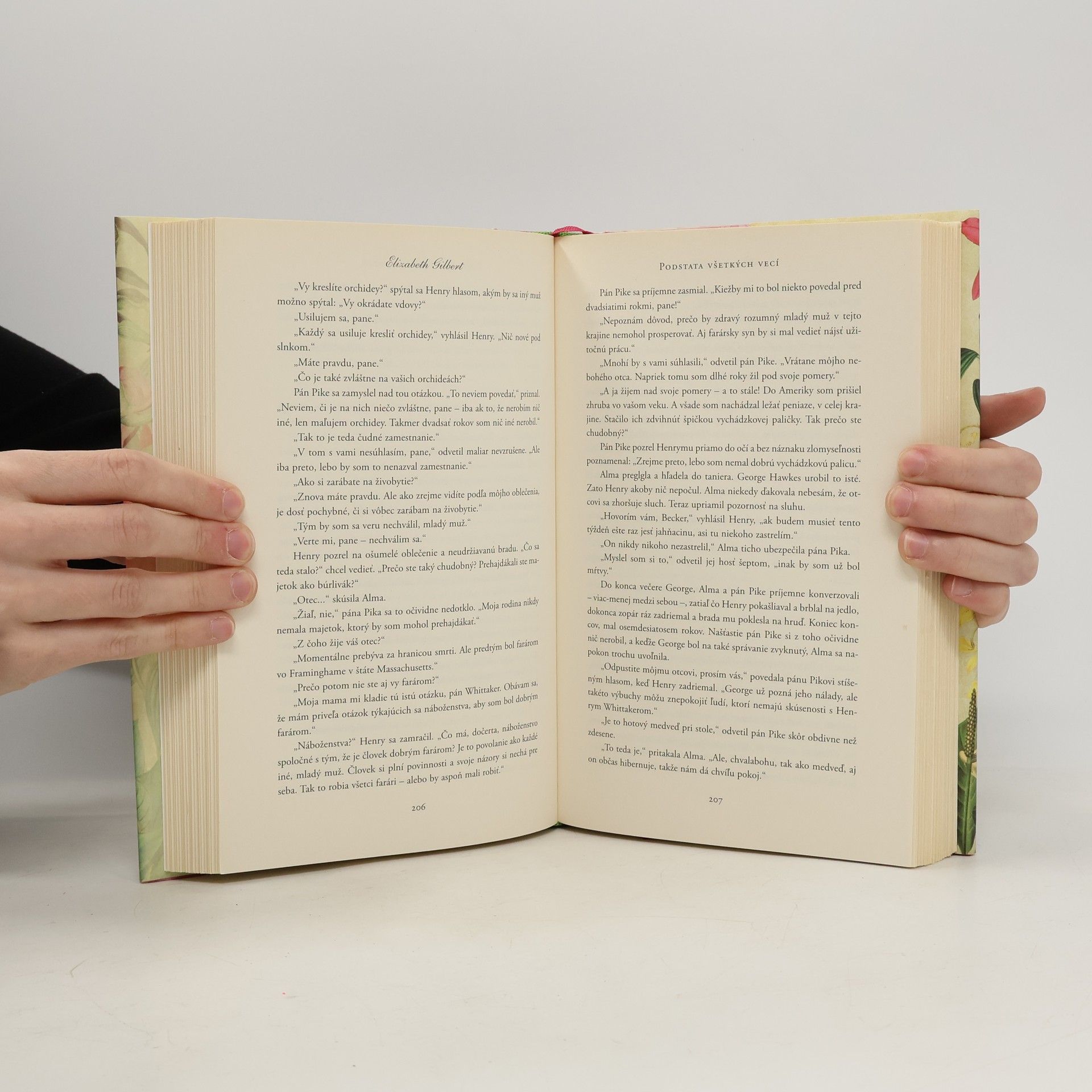 Román Podstata všetkých vecí sa začína koncom 18. storočia a rozpráva strhujúci príbeh o čase, keď ľudstvo stálo na prahu takmer všetkých dôležitých objavov a človek si začal podmaňovať svet. Bystrá Alma Whittakerová je dcérou charizmatického obchodníka s rastlinami. Zatiaľ čo vďaka štúdiu a záujmu o botaniku čoraz hlbšie preniká do záhad evolúcie, muž, ktorého ľúbi, ju zoznamuje s iným svetom – s duchovným kráľovstvom zázrakov. Oboch však spája úsilie pochopiť svet okolo seba a podstatu celého bytia.