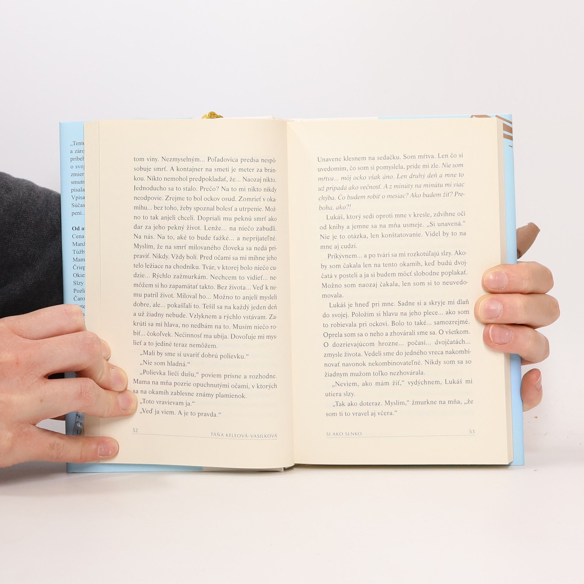 „Tento príbeh nie je o mne a o mojom ockovi, a zároveň aj trochu je. No predovšetkým je to príbeh všetkých dcér, ktoré tragicky prišli o svojich otcov a nevedeli sa s tým vyrovnať, zmieriť, prijať smrť milovaného človeka. Je smutný, pretože som ho – po dlhšej prestávke – písala ako prvý po tom, čo ocko od nás odišiel. Vpísala som doň svoj žiaľ, smútok, bolesť. Súčasne však ide o príbeh plný zvratov, prekvapení... a lásky.“ Táňa Keleová-Vasilková