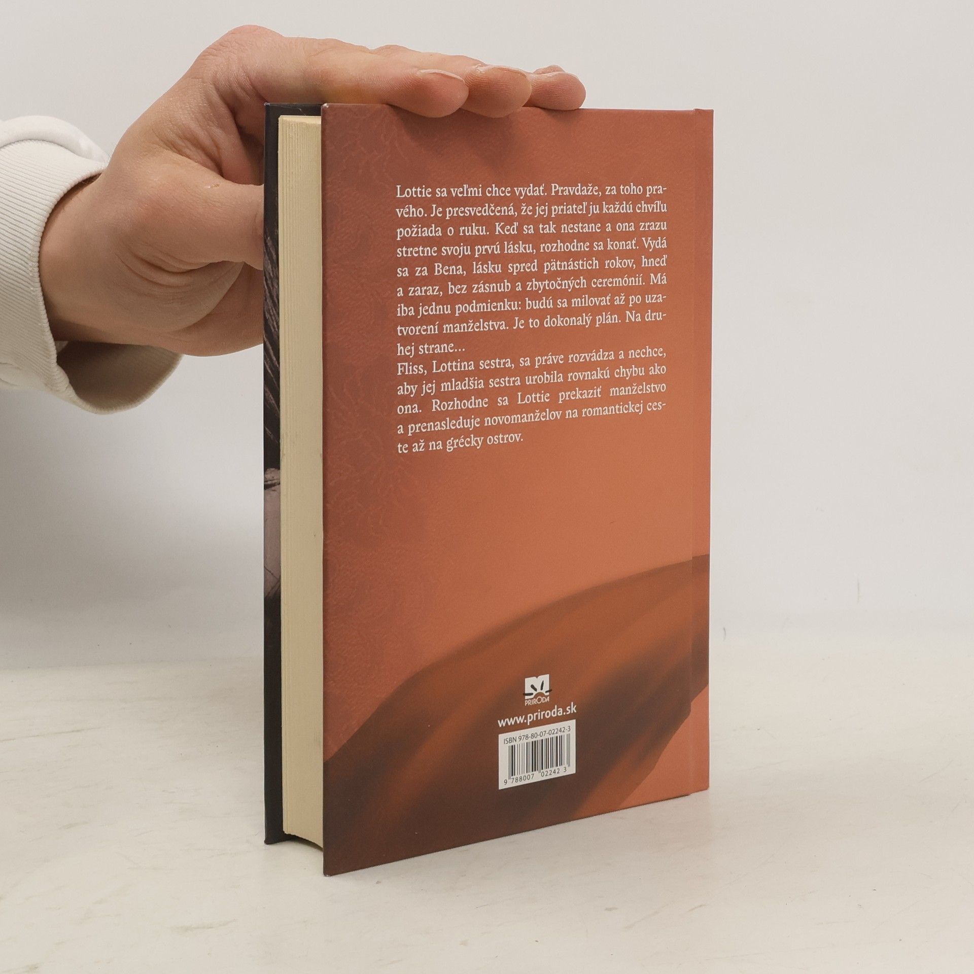 Lottie sa chce veľmi vydať. Pravdaže, za toho pravého. Je presvedčená, že jej priateľ ju každú chvíľu požiada o ruku. Keď sa tak nestane a ona zrazu stretne svoju prvú lásku, rozhodne sa konať. Vydá sa za Bena, lásku spred pätnástich rokov, hneď a zaraz, bez zásnub a zbytočných ceremónií. Má iba jednu podmienku: budú sa milovať až po uzatvorení manželstva. Je to dokonalý plán. Na druhej strane... Fliss, Lottina sestra, sa práve rozvádza a nechce, aby jej mladšia sestra urobila rovnakú chybu ako ona. Rozhodne sa Lottie prekaziť manželstvo a prenasleduje novomanželov na romantickej ceste až na grécky ostrov. Lottie prežije svadobnú noc, na ktorú nikdy nezabudne. Alebo radšej zabudne?
