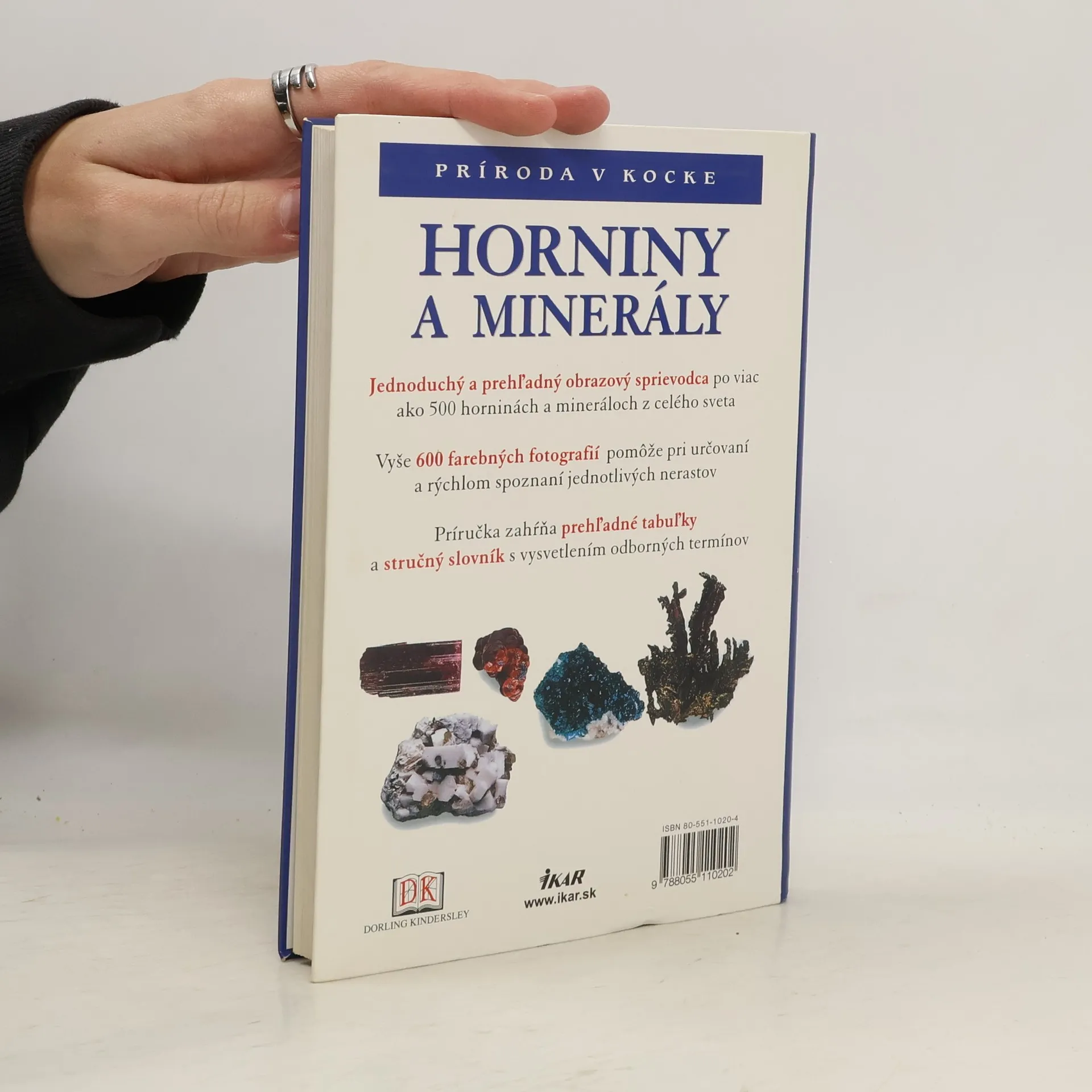 Jednoduchý a prehľadný obrazový sprievodca po viac ako 500 horninách a mineráloch z celého sveta. Vyše 600 farebných fotografií pomôže pri určovaní a rýchlom spoznaní jednotlivých nerastov. Príručka zahŕňa prehľadné tabuľky a stručný slovník s vysvetlením odborných termínov