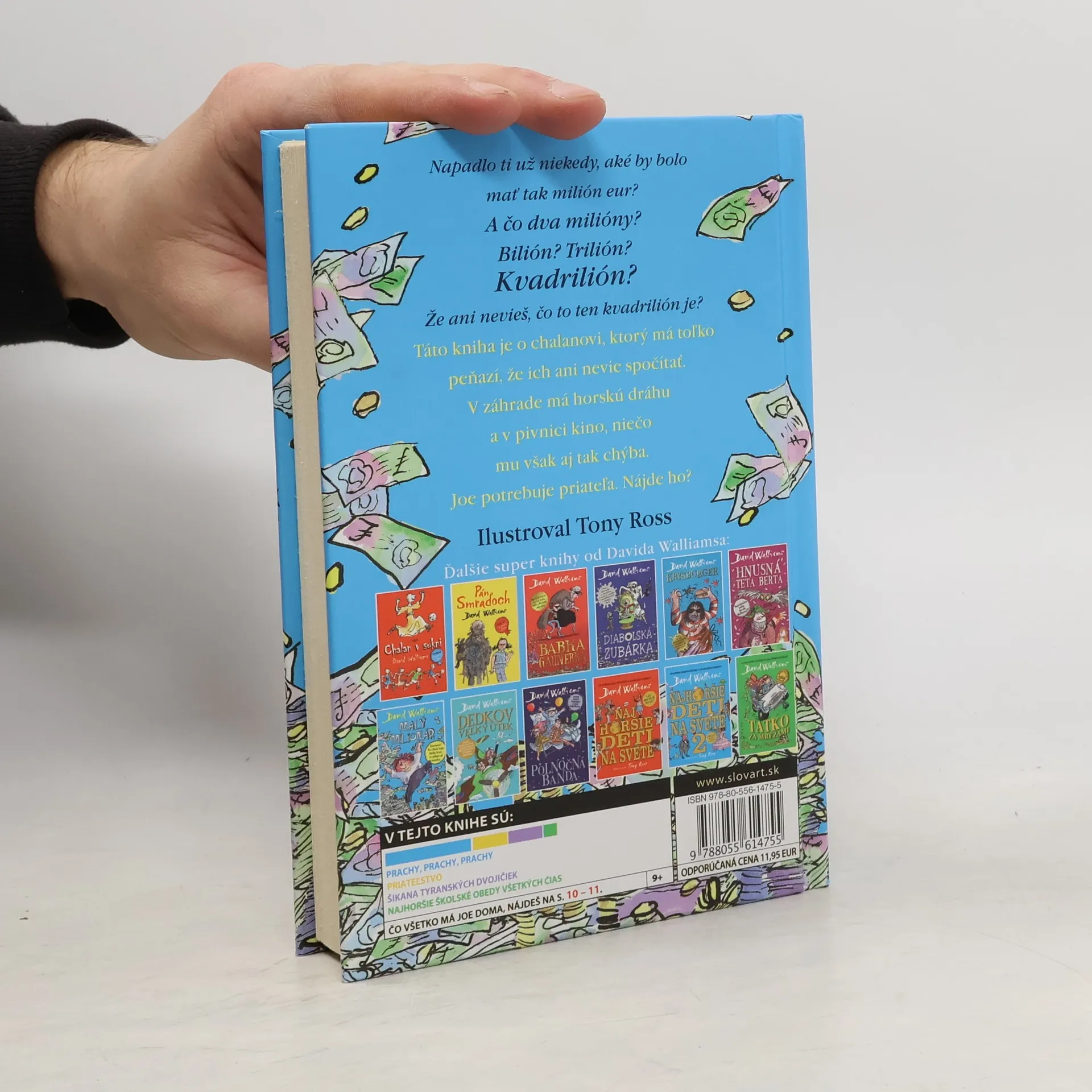 Ďalšia kniha od svetoznámeho britského komika a autora detských kníh Davida Walliamsa rozpráva je príbehom chlapca, z ktorého sa akoby zázrakom stane zo dňa na deň milionár. Dvanásťročný Joe tak má zrazu všetko, na čo si len spomenie. Vlastnú Formulu 1, nahrávacie štúdio, žraloka, dokonca aj komorníka, ktorý je... Čo myslíte? No predsa orangutan! Má to ale niekto v živote šťastie! Veď čo viac si môže chalan v jeho veku priať? Ale Joeovi k šťastiu predsa len niečo chýba. Ozajstný priateľ. Podarí sa mu ho nájsť? Prezradíme len toľko, že pri to hľadaní nebude mať ľahké. Pochopí aj to, že peniaze naozaj nie sú všetko.